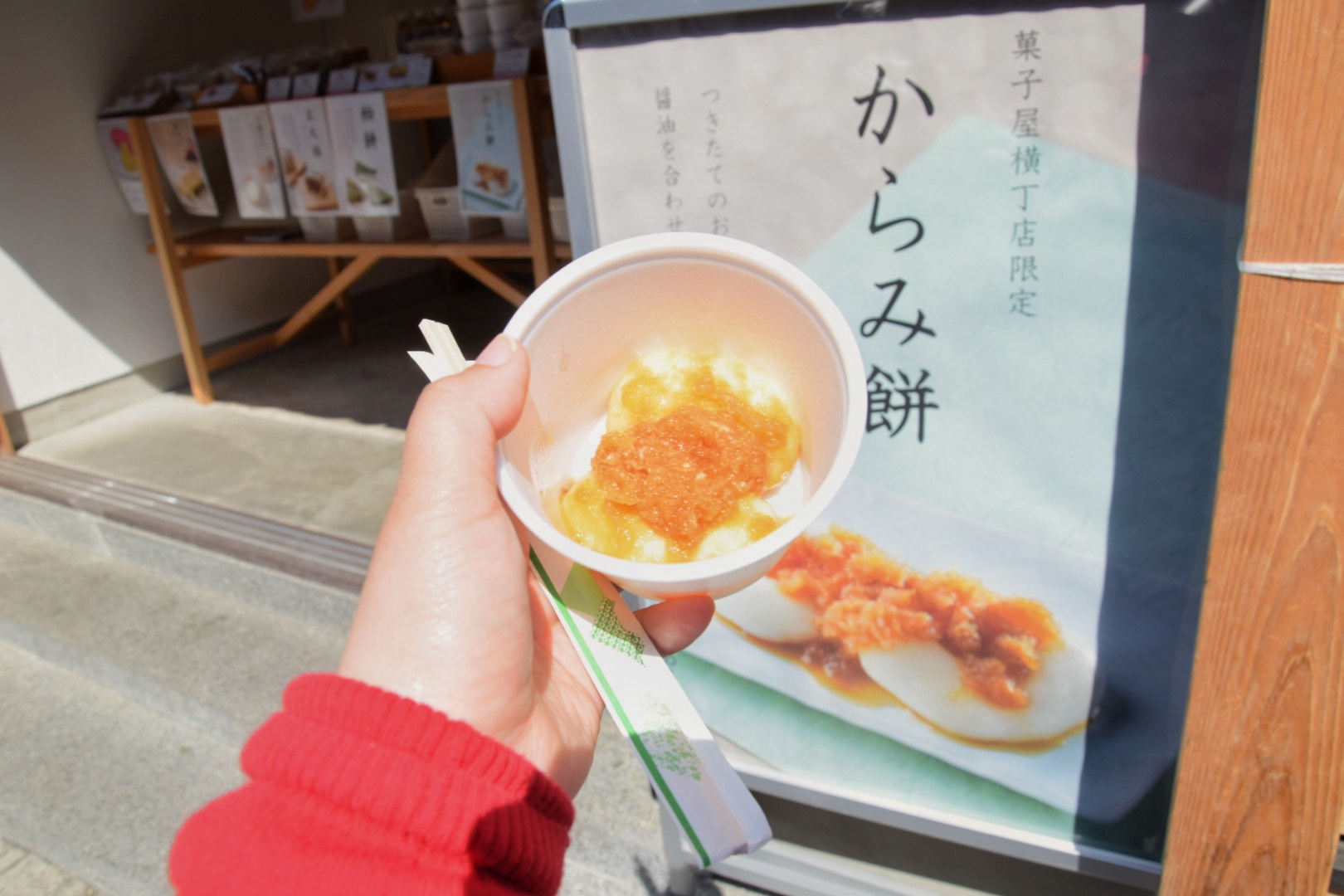 亀屋 菓子屋横丁店限定の「からみ餅」は、つきたてのお餅にたっぷりの大根おろしをのせた贅沢な一品!