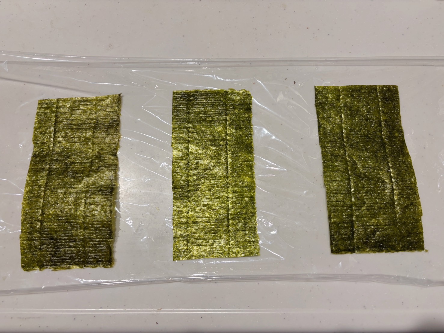 (6)三等分にラップごと切り離したら、三角に軽く握って出来上がり。