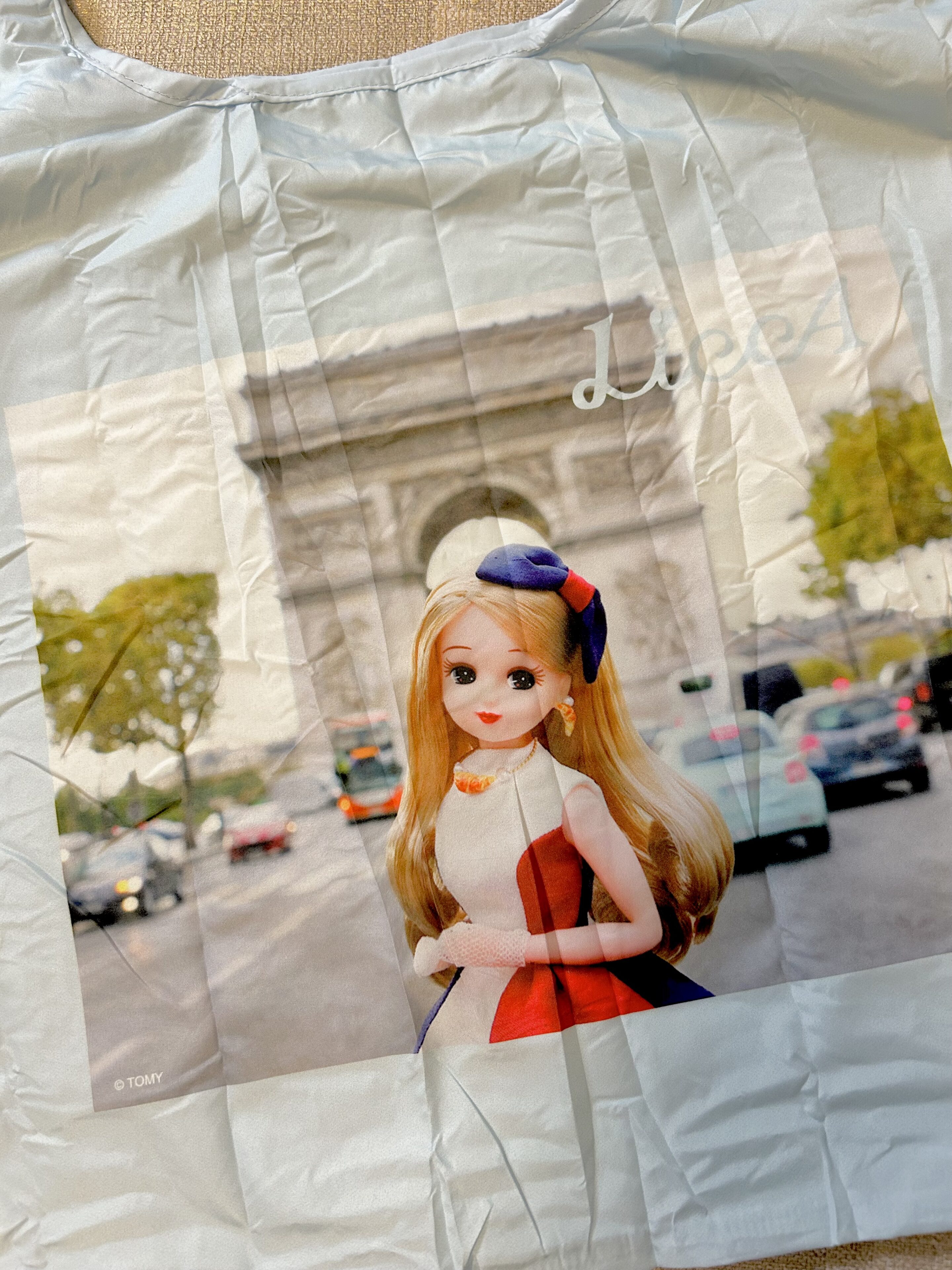 全面にパリをエンジョイするリカちゃんがプリントされています。