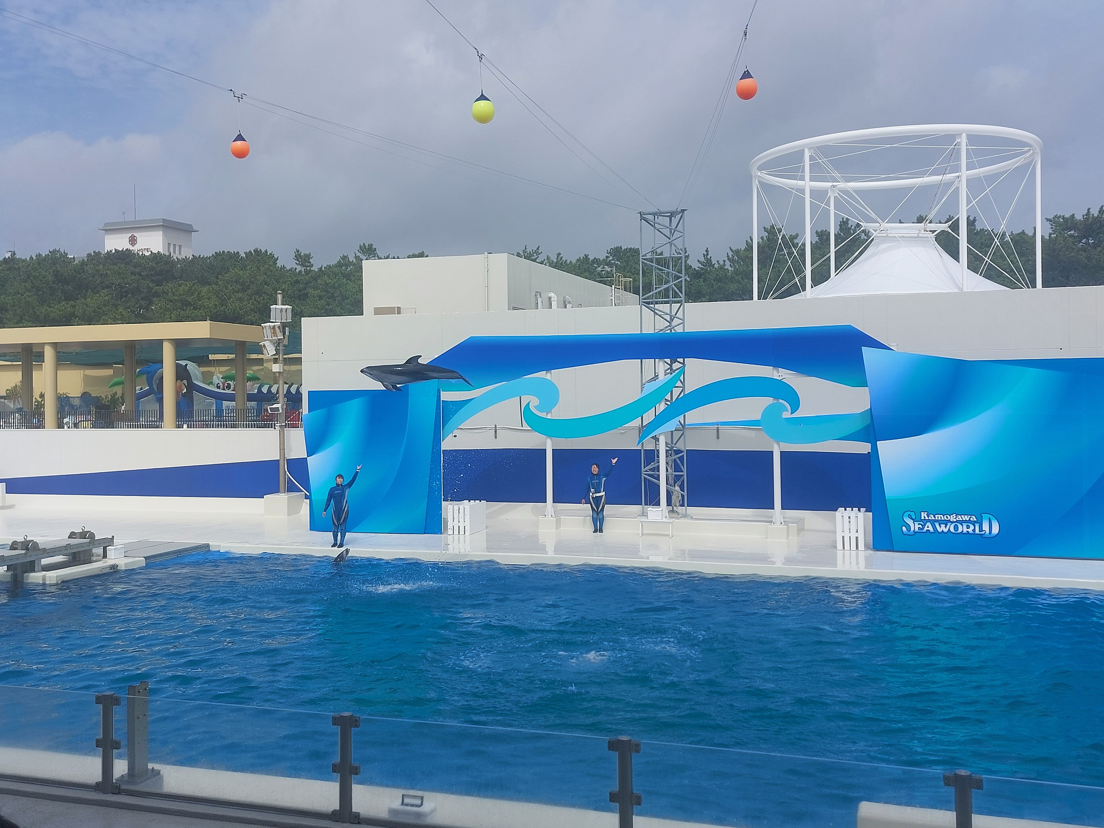 入場してすぐにイルカのショーがあるサーフスタジアムに行きました。