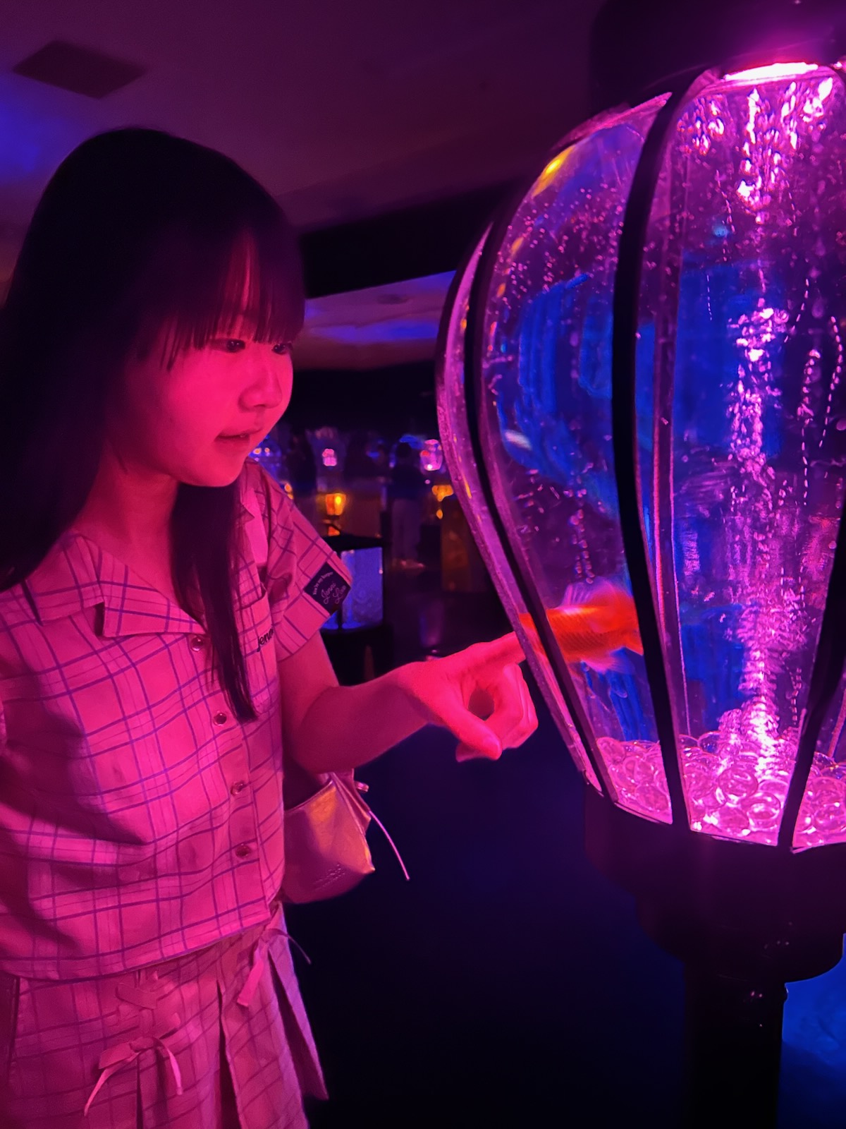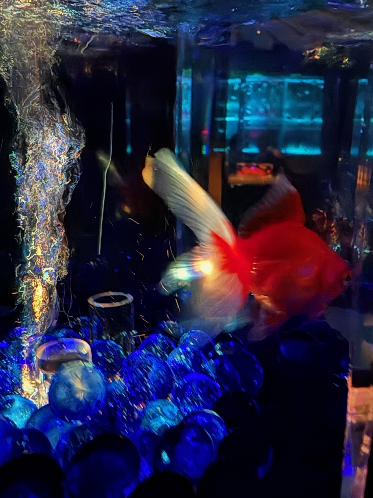 優雅に泳ぐ金魚といい香りに癒されて、しばらくの間ここにいました。