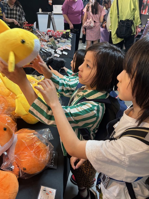 ちなみに息子にぬいぐるみ、娘にポーチ、自分用にめじるしチャームを購入。金魚好きにはたまりません……。