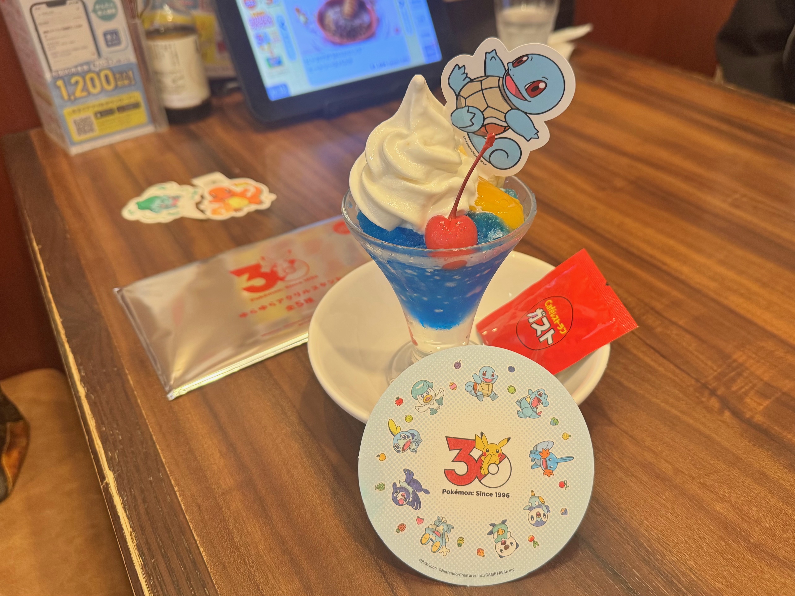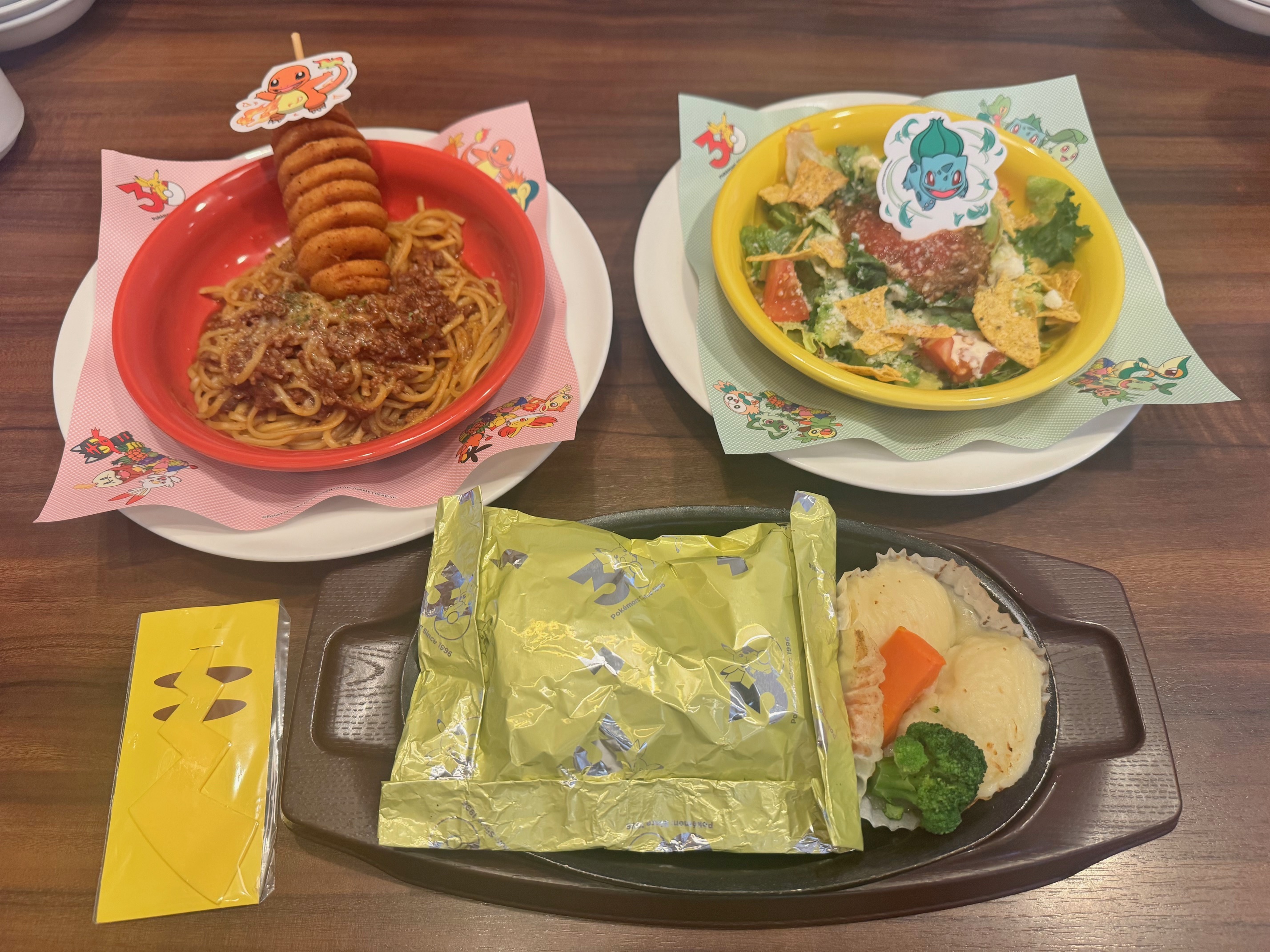 記念撮影ができるポケモンのフォトパネルや、特別デザインの座席カードが用意されていて、入った瞬間から普段とは違うワクワクした雰囲気に。子どももすぐに気づいて「あちこちにポケモンがいる!」と大興奮でした。店内や座席のところどころにポケモン要素が散りばめられているので、待ち時間もあっという間に感じられました。