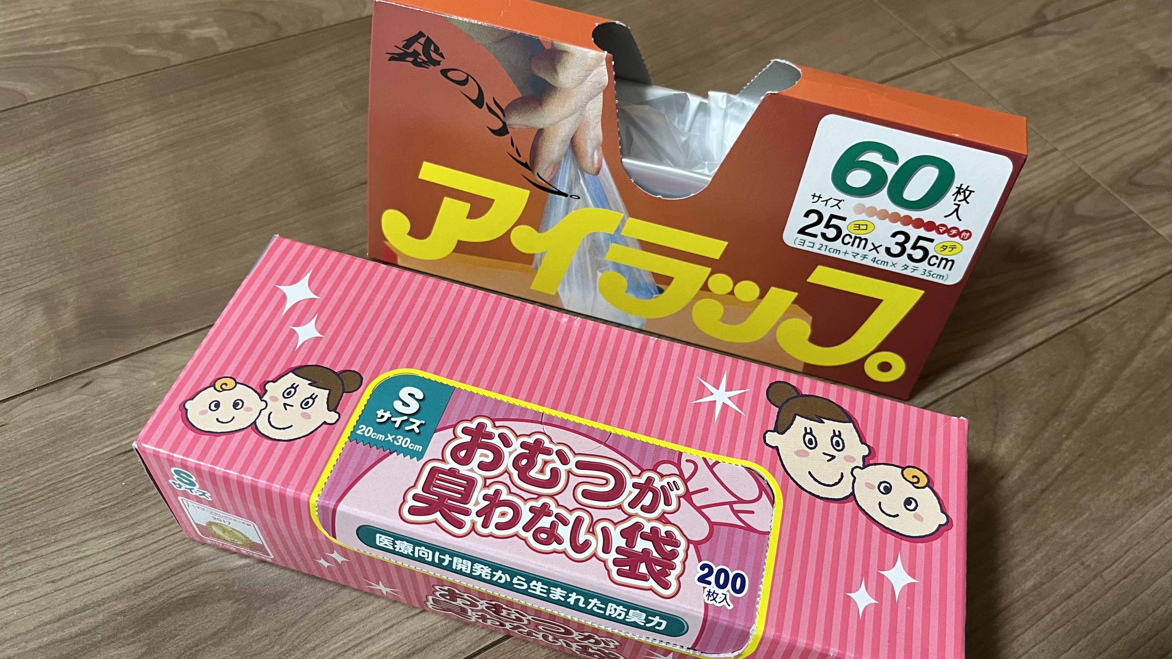 おむつ用のゴミ袋も、中身が見えず臭いが漏れにくいので数枚一緒に持参しています。