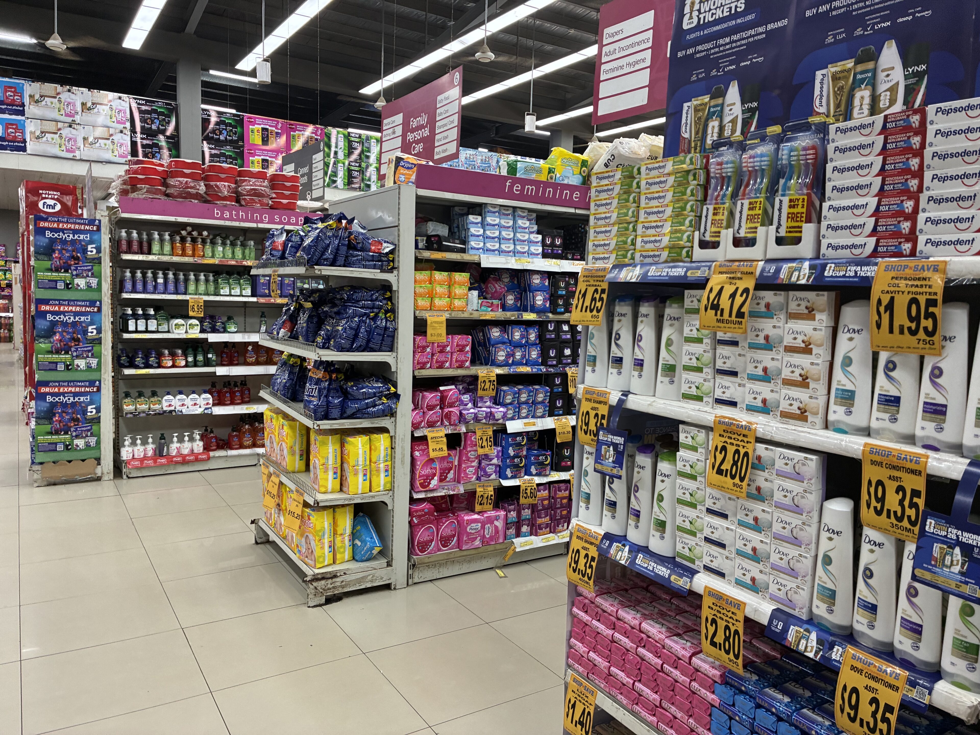 スーパー内は飲食だけでなく日用品の購入も可能。