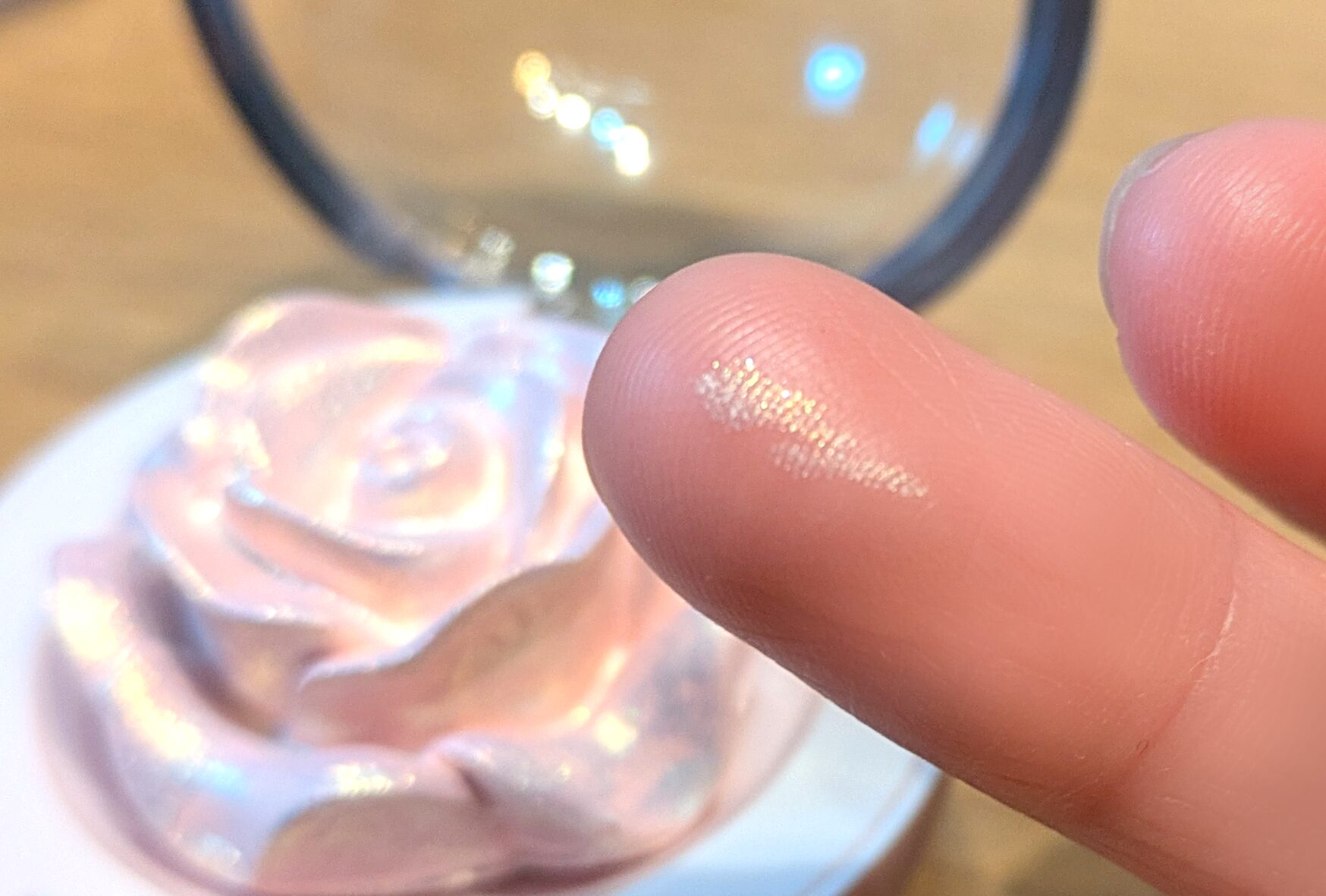 バラを崩したくなさすぎて端を使って少しだけ塗ってみましたが、色味もしっかり出てラメ感も可愛かったです。