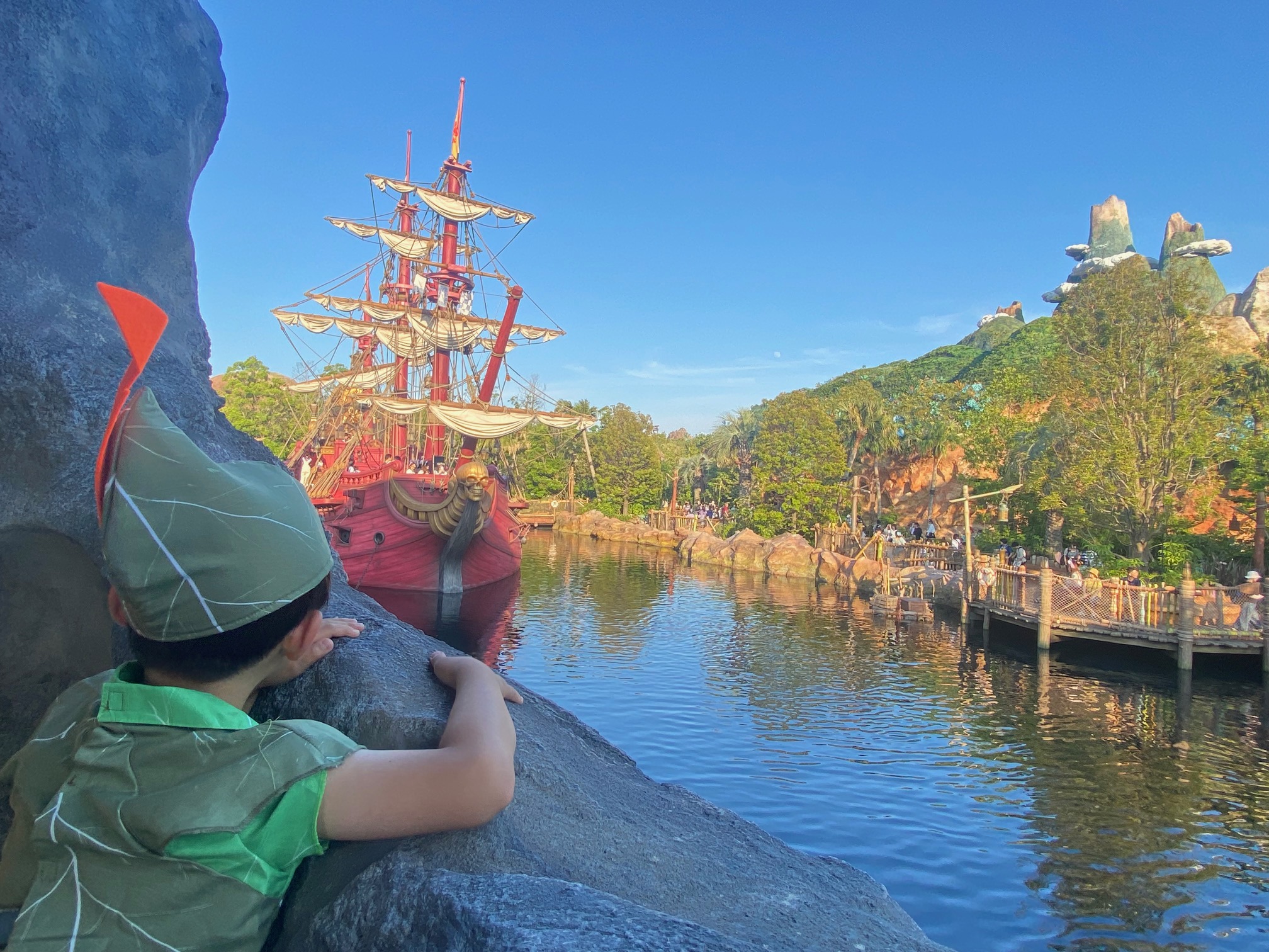 ピーターパンのネバーランドエリアで海賊船に乗ったりして遊ぶ