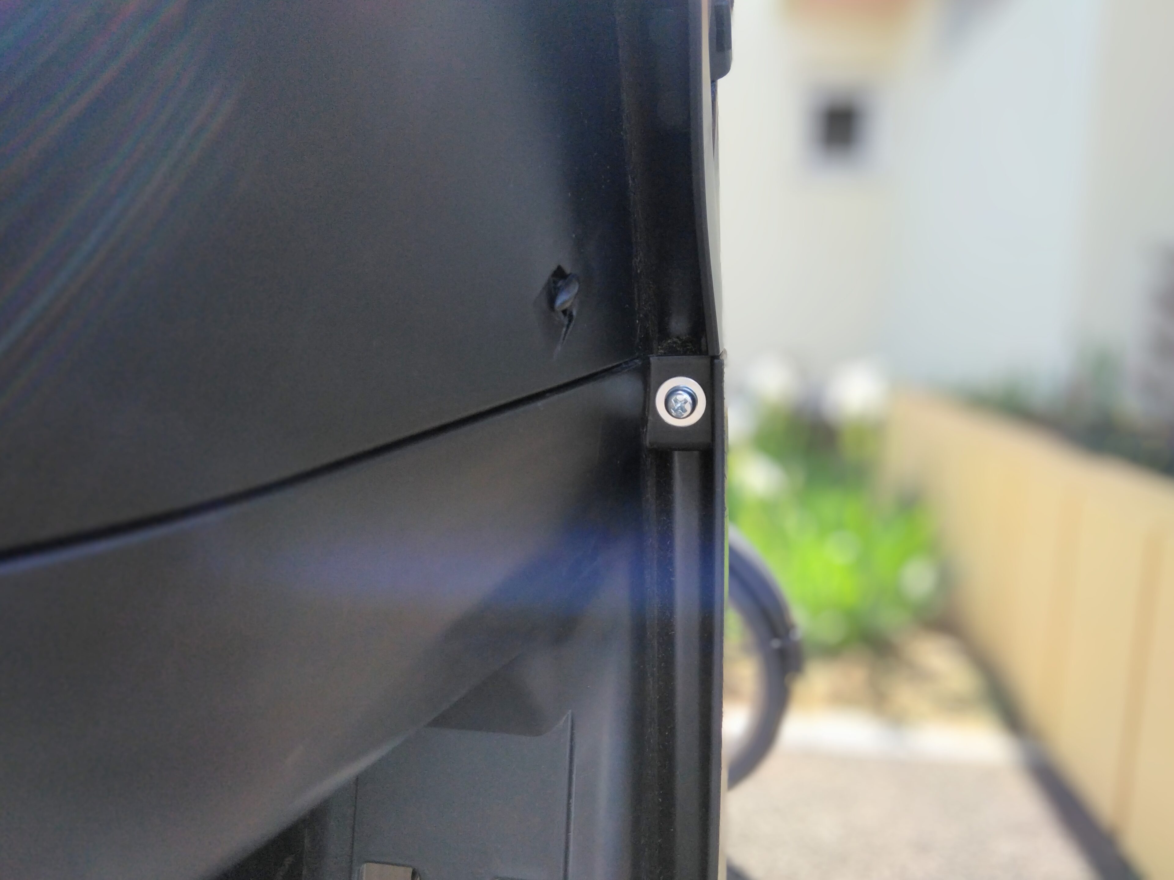 ネジが外れていました。私が乗っているのはPanasonicの「ギュット・アニーズ・DX」で後ろの子乗せシートは本来4箇所で固定されています。このうちの1つが外れていました。このネジ、左右で1セットなので、たとえ片方だけ必要でも2つ購入しなければなりません。価格は2,500円程でした。