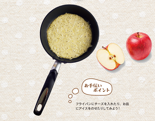 あんふぁん・ぎゅってでは子どものはじめての挑戦を応援。今回はチーズ生地とりんごのおやつピザを紹介します。