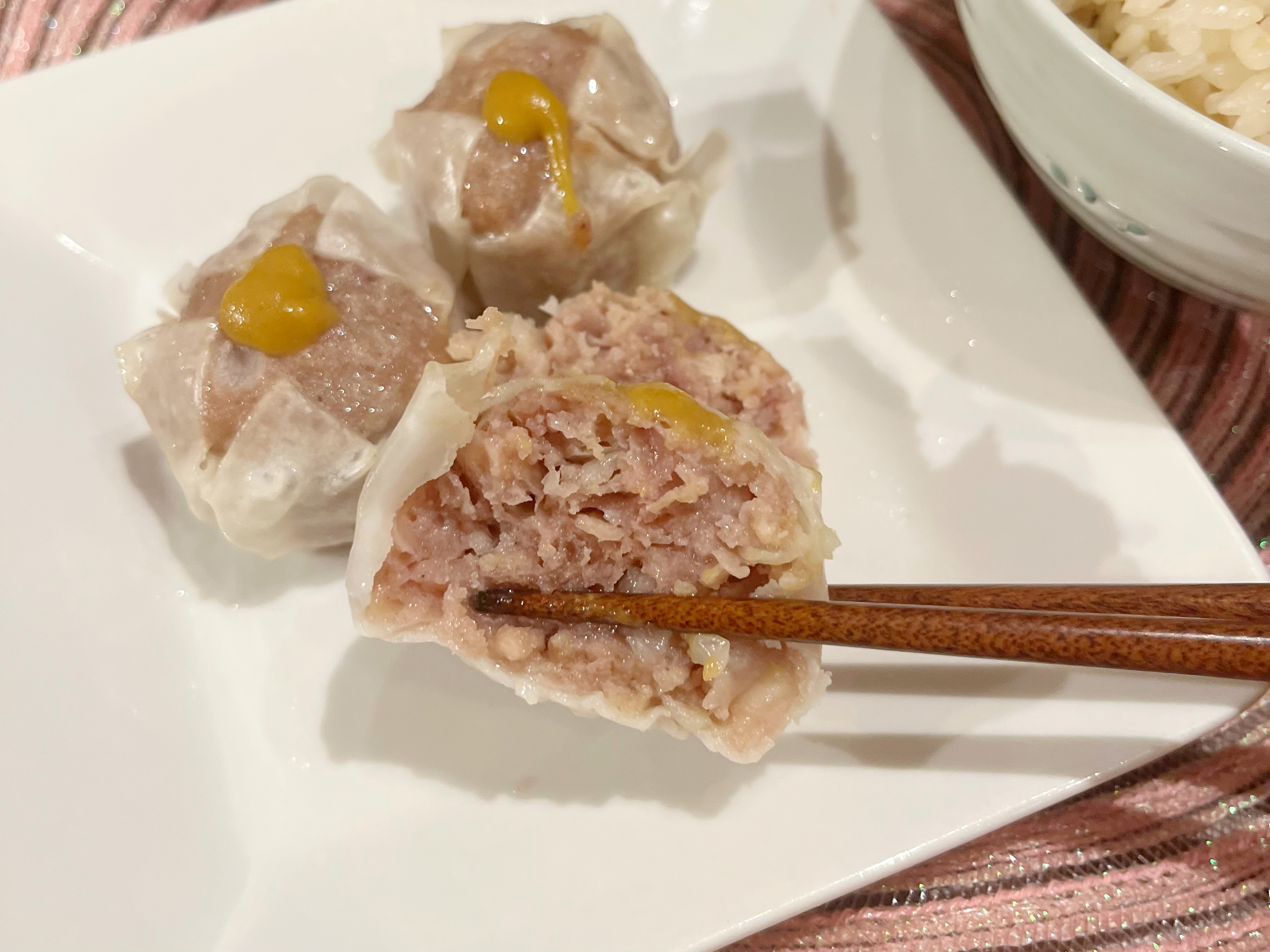 一粒40gの食べ応えのあるサイズの焼売は、何もつけなくてもおいしい!国産の豚肉と鶏肉を100%使用し、ゴロっとした粗挽き肉の食感と、しっかりした味付けとなっています。