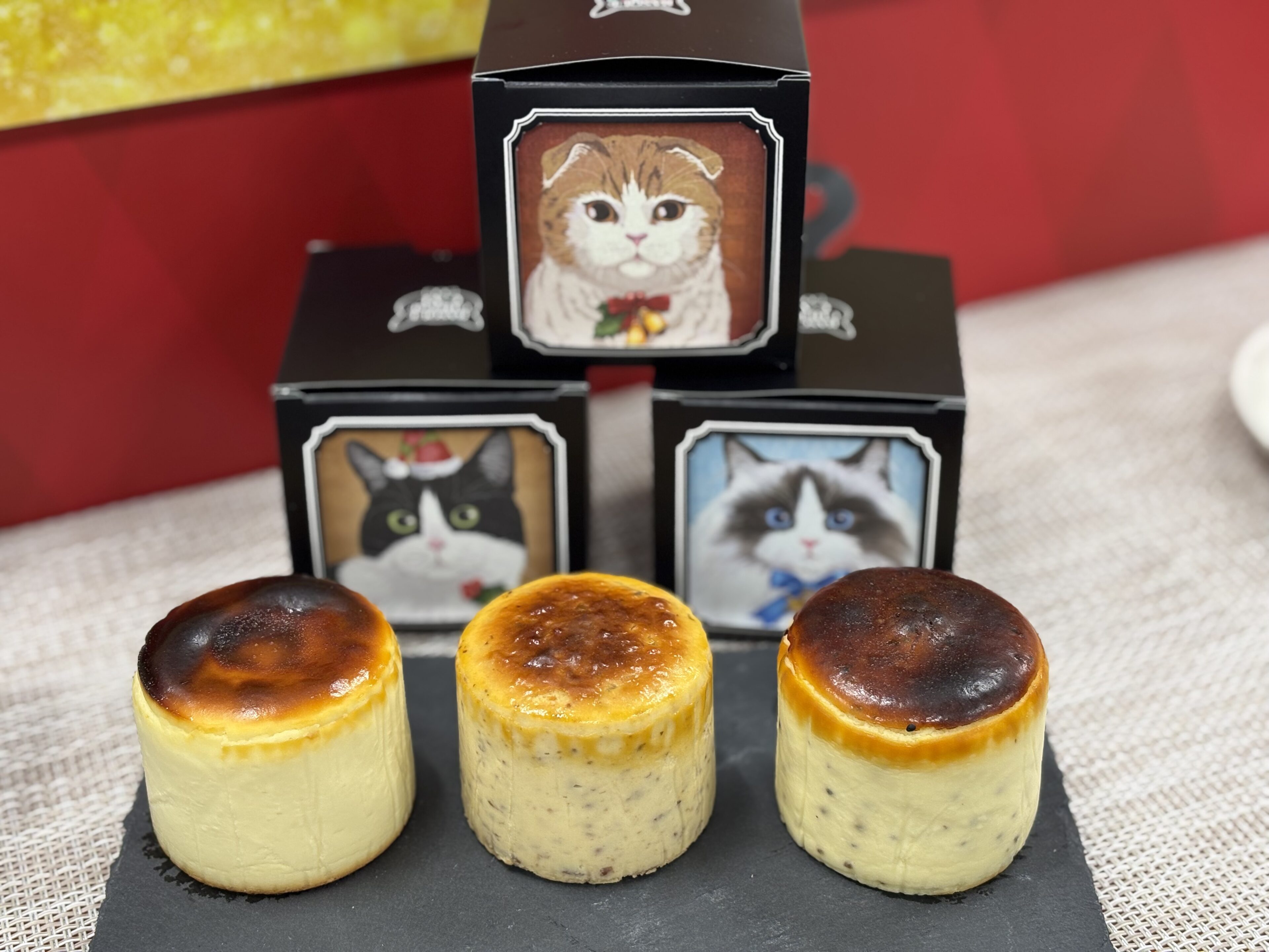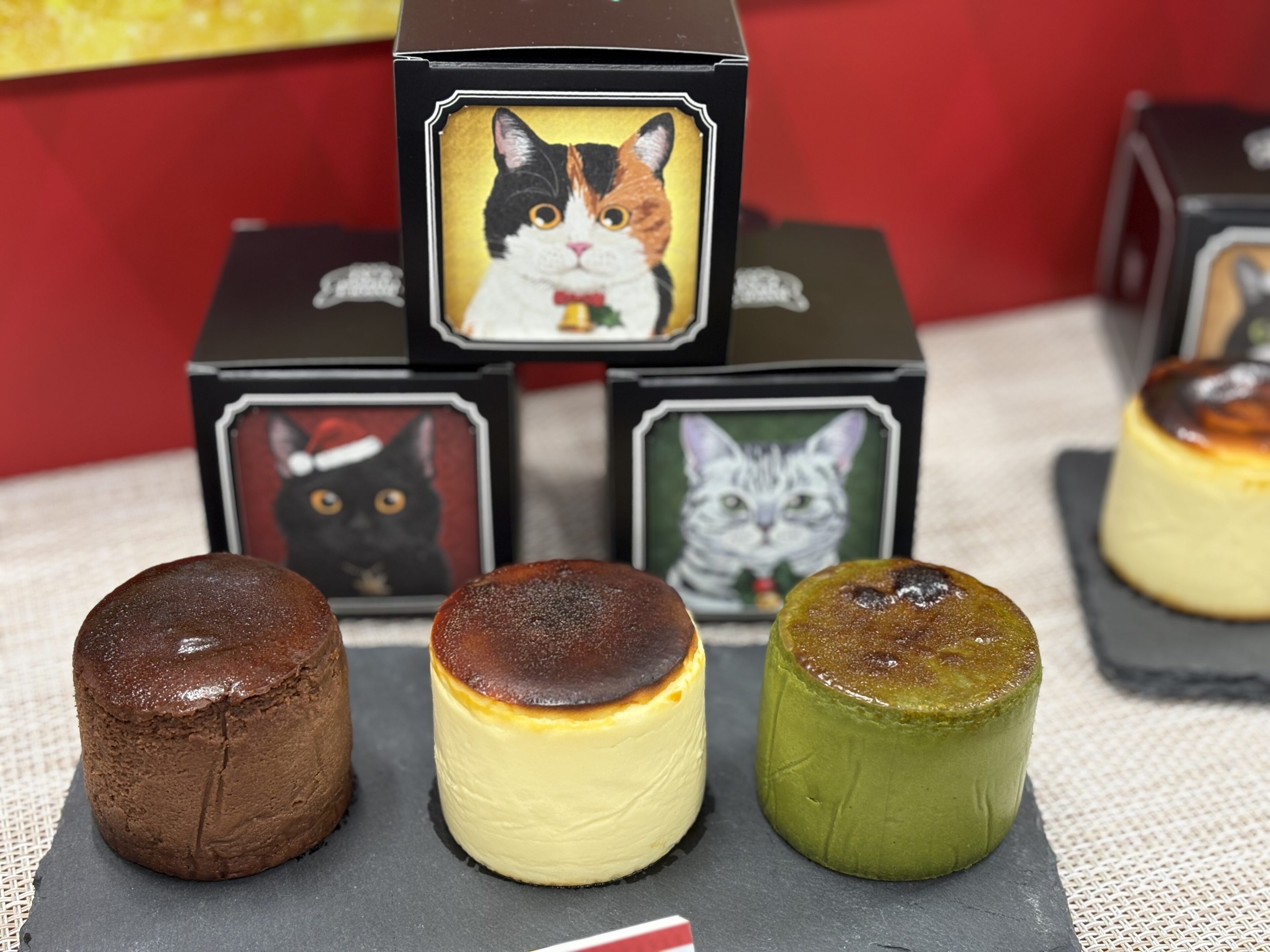昨年、人気だったという個食ケーキ。今年は、かわいい猫のメッセージカードが正面に入ったボックス付きの「バスクチーズキャット」が初登場!2つのセットからお好みのフレーバーを選べます。
