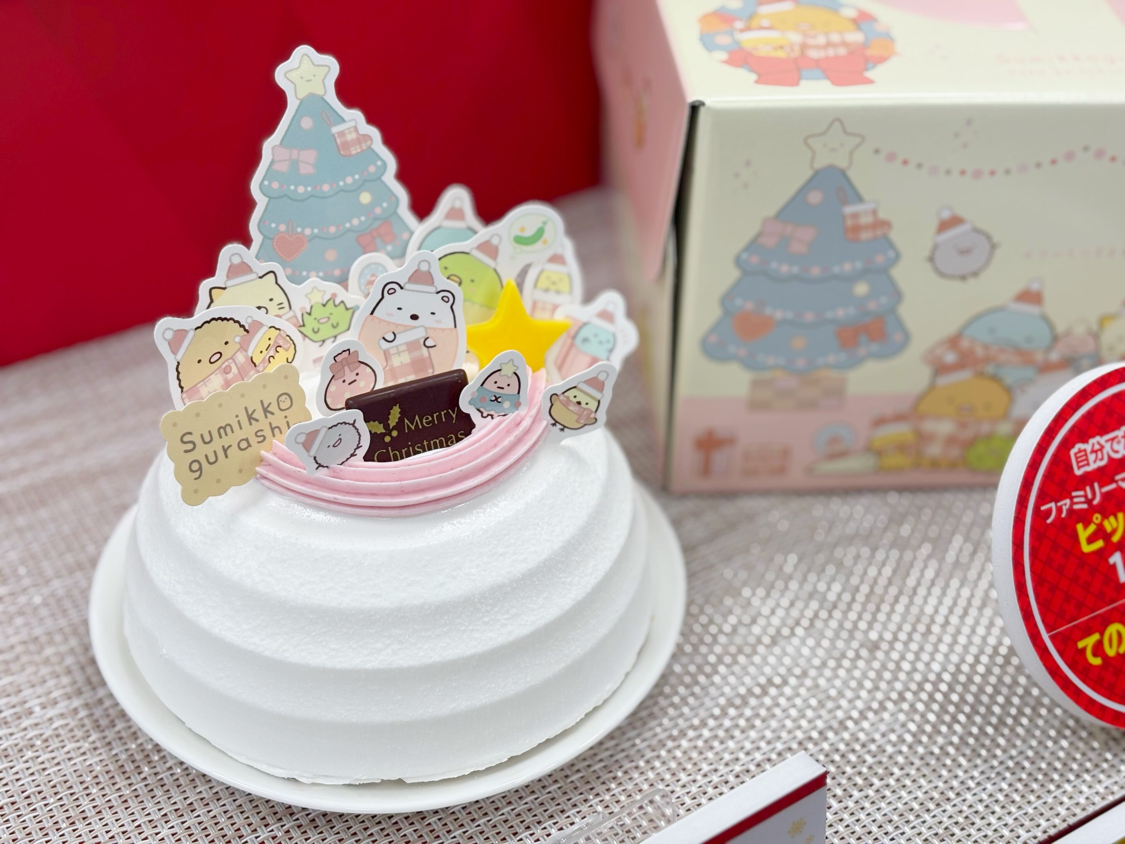 ファミリーマートオリジナルてのりぬいぐるみがついてくる「すみっコぐらし」のケーキは、ふんわりとしたスポンジに、いちごジャムといちご風味クリームをサンド。ピックシートでかわいくデコレーションもできちゃいます。