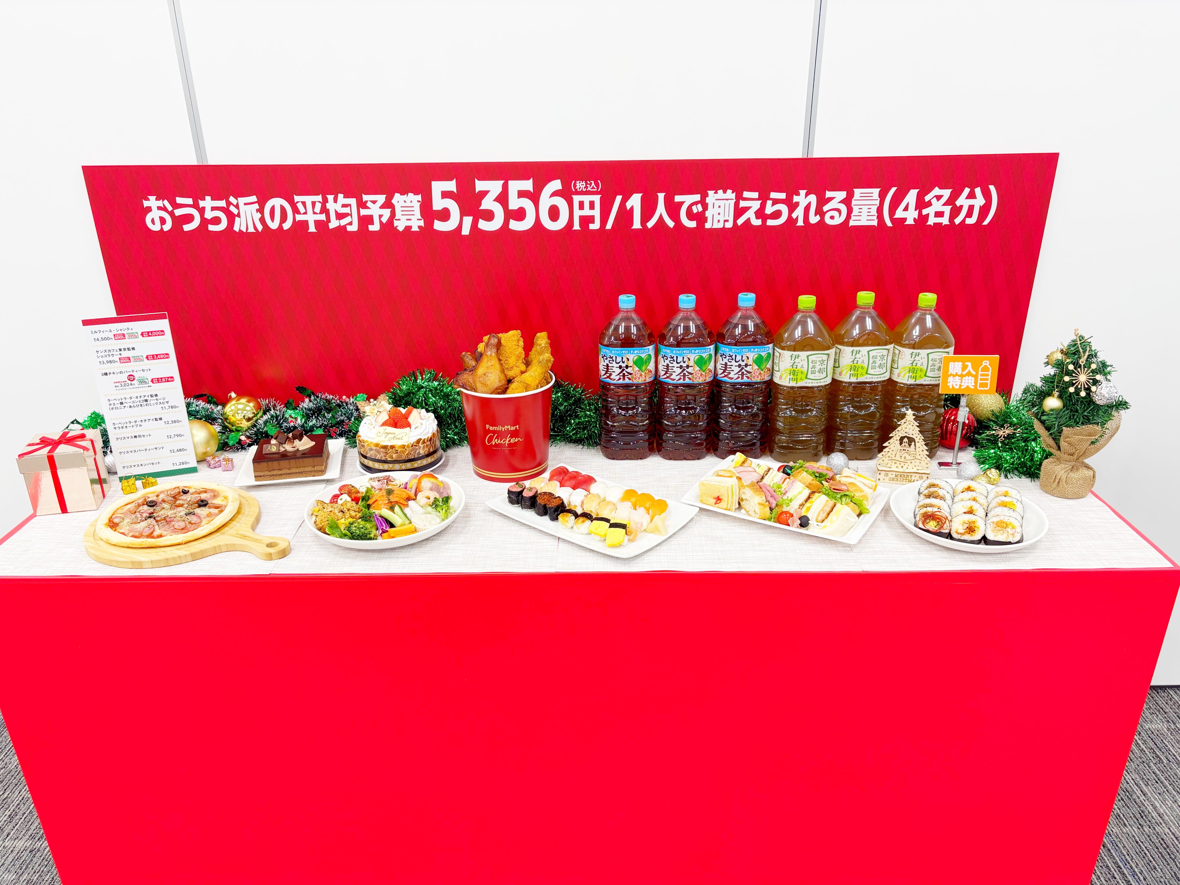 【ファミリーマート】が行った「クリスマスに関する意識調査」によると、『クリスマスディナーおうち派』の約6割が予算を「5,000円未満」と回答。平均予算は5356円/人でした。そこで、家族4人分、【ファミリーマート】の商品でクリスマスパーティーをするなら?のメニューの提案もご紹介します。