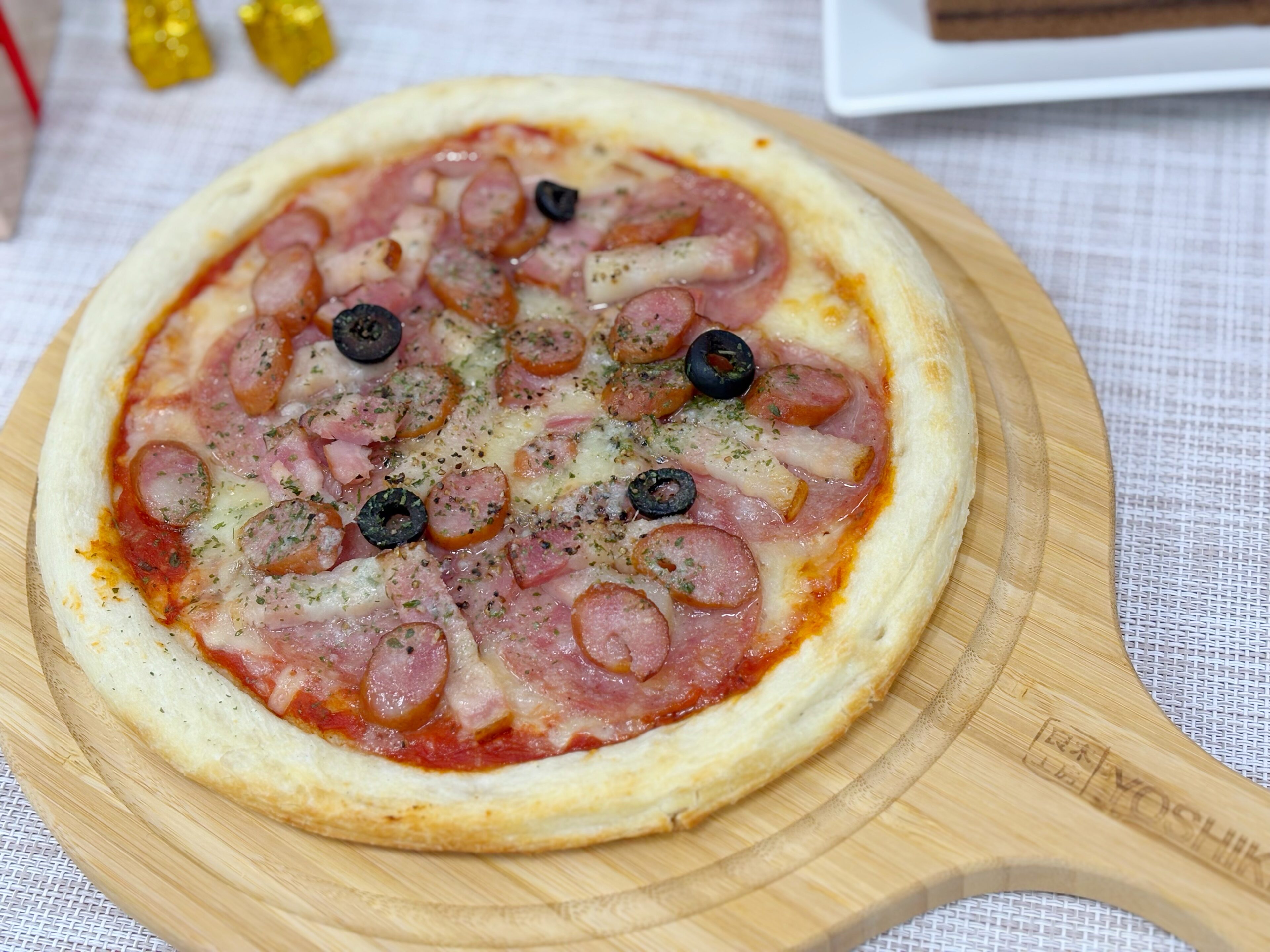 ホエー豚ベーコンと2種ソーセージ(ボロニア・あらびき)のミックスピザ