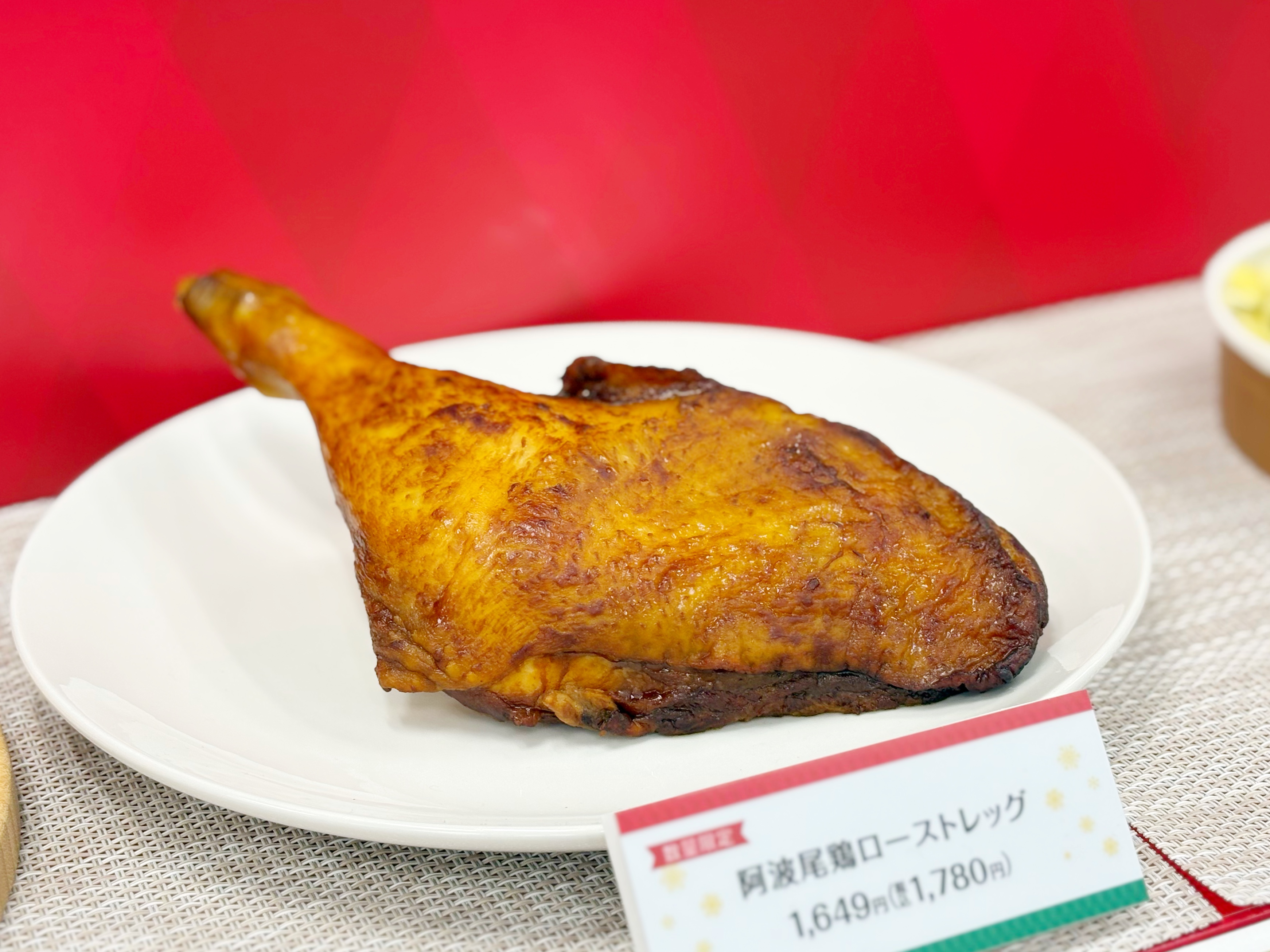 割引の対象外にはなりますが、ちょっと贅沢に徳島県産の地鶏「阿波尾鶏」を使ったローストレッグもおすすめ。味付けには徳島県鳴門の食塩を使用し、素材本来のおいしさを引き出しています。