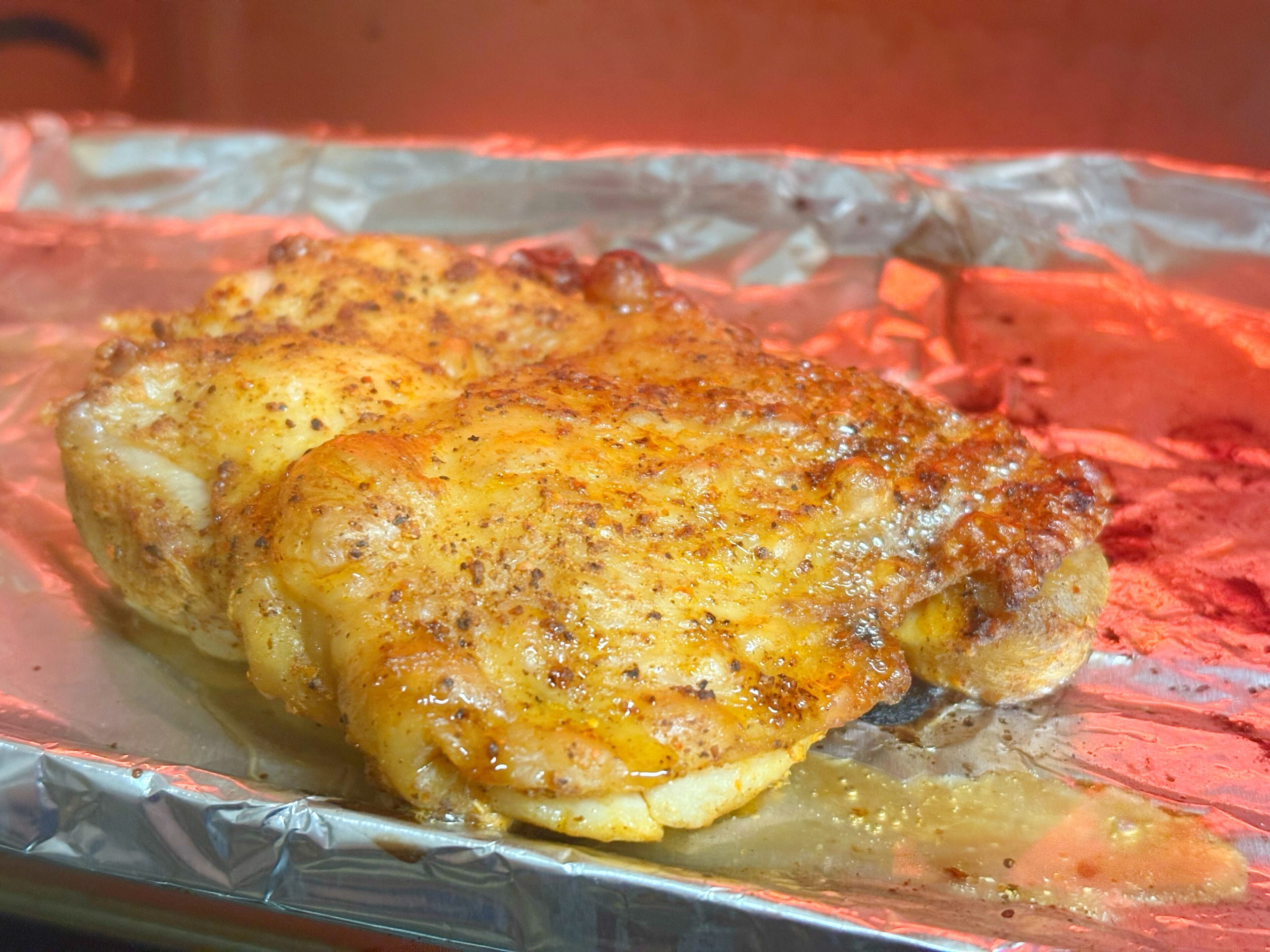 夫は、「チキングリル~バター醤油ソース~」をチョイス。ポイントは、電子レンジで解凍後に、オーブントースターで表面をカリッと焼き上げること。このひと手間で表面はパリッと、中はジューシーに仕上がります。