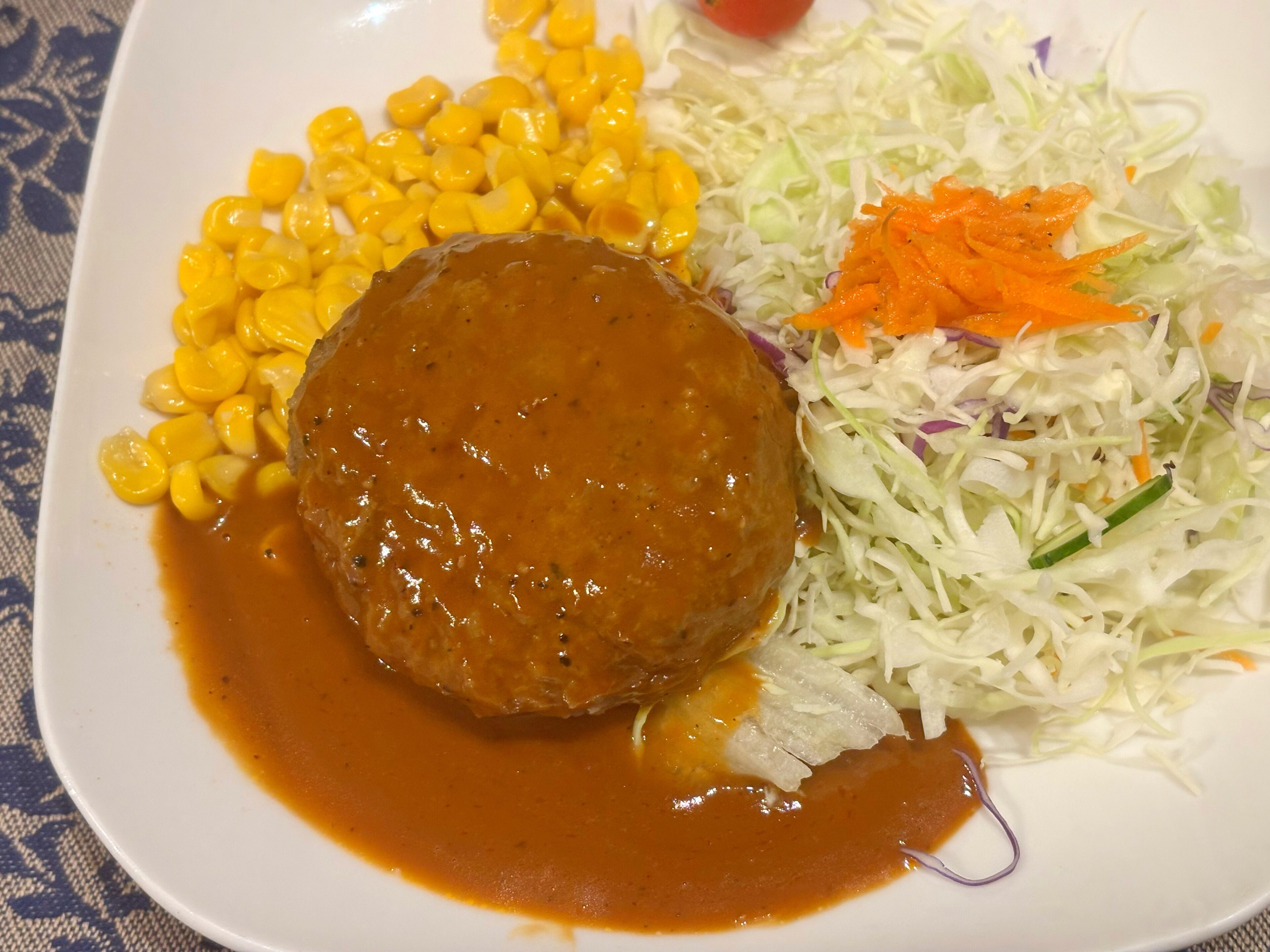 せっかくなので、家族みんな、それぞれ好きなものを選んでみました。息子は大好きなハンバーグを!「黒×黒ハンバーグ~ブラウンバターソース~」は、柔らかな国産黒毛和牛と黒豚を黄金比で配合したこだわりのハンバーグです。コク深いブラウンバターソースは、家庭では絶対に出せない味わい。