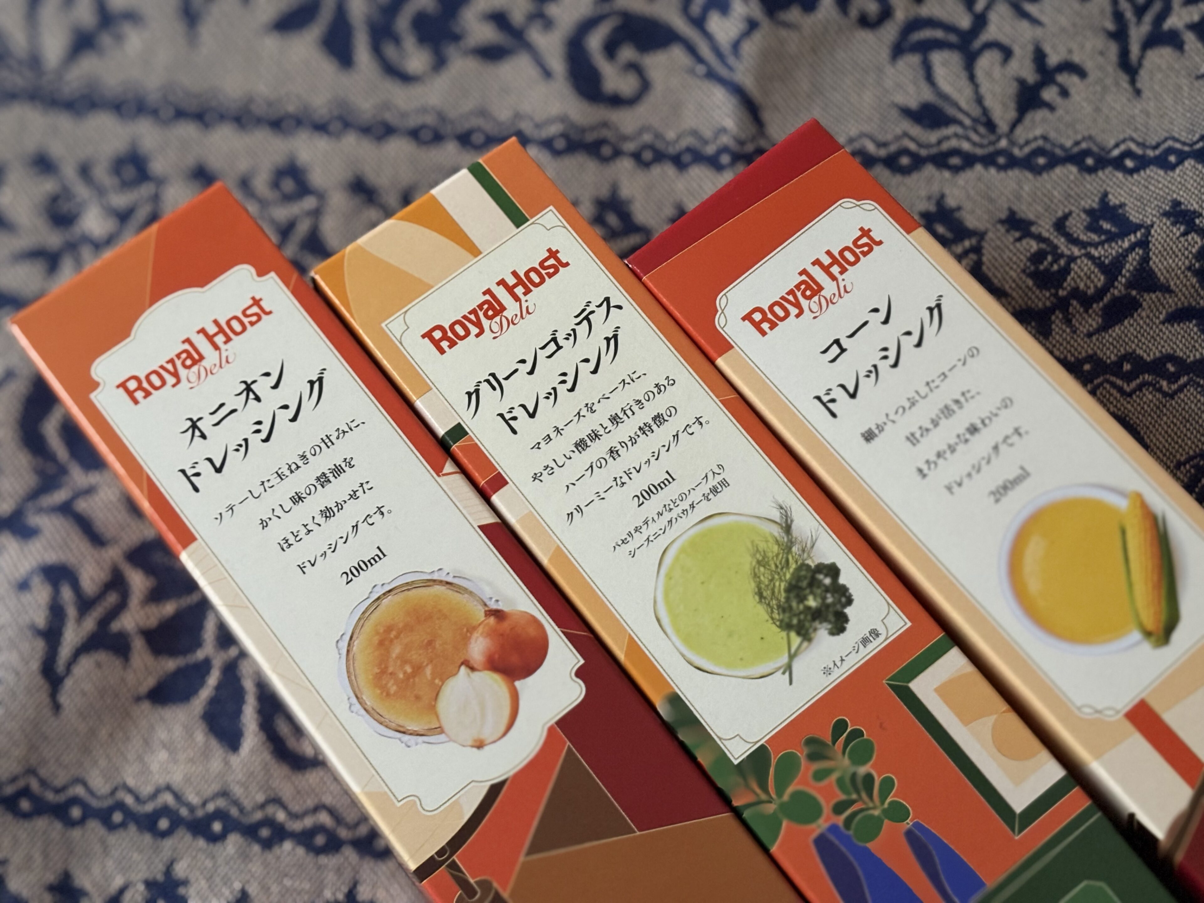 私的におすすめしたいのが、ドレッシング。私、ドレッシングだけは値段と味が比例すると信じているのですが、【Royal Host Deli】のドレッシングは、コスパがよくて、レストランで食べるようなサラダが手軽に楽しめます。中でも、1970年代にロイヤルホストの店舗にて提供され、一時期お持ち帰り用として販売していた「グリーンゴッデスドレッシング」が復活!どれも非加熱式で製造した冷蔵タイプで、素材そのものの味わいを楽しめます。