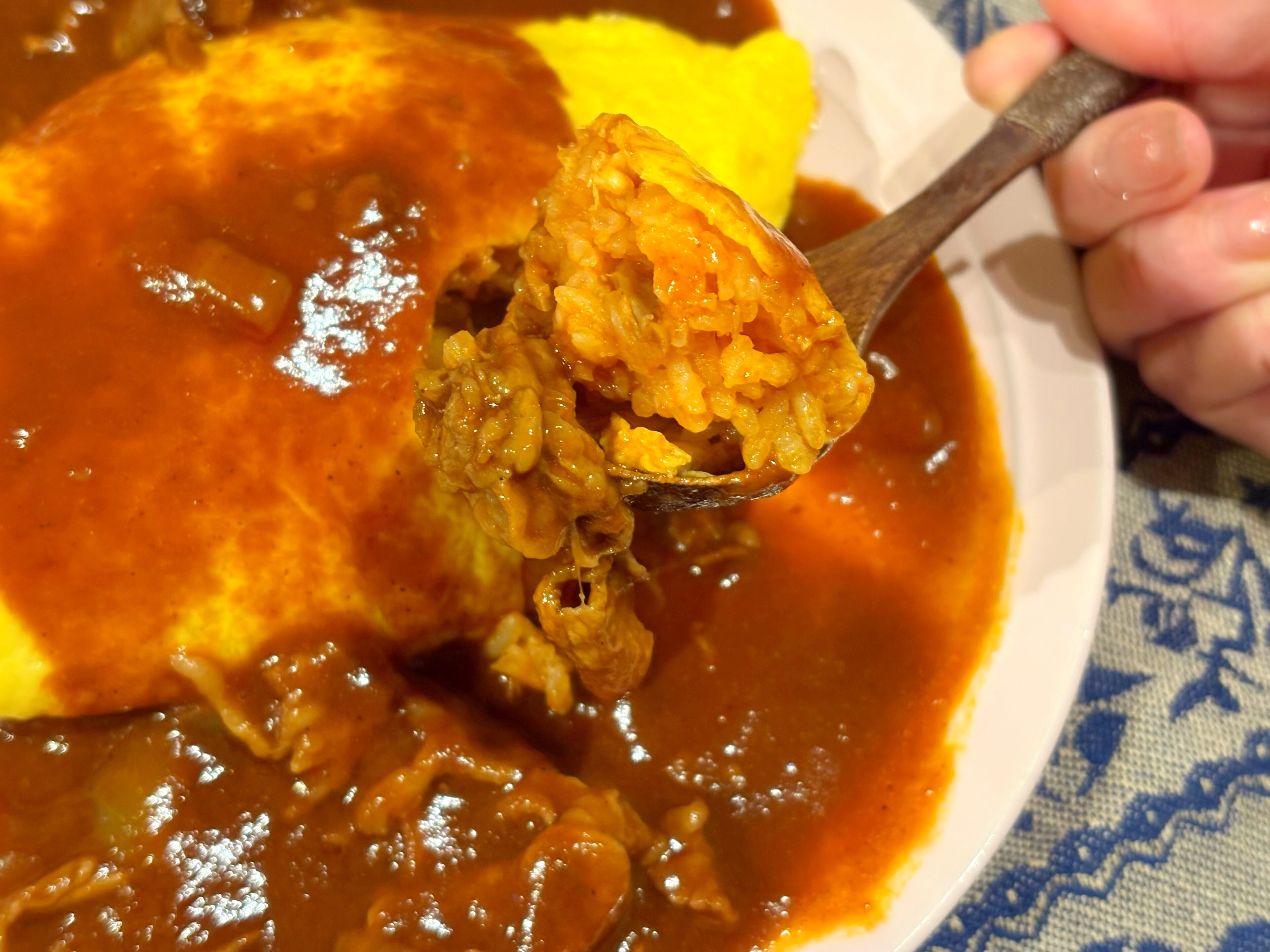 娘は、冷凍とは思えない「オムライス~ハッシュドビーフソース~」にしていました。チキンライスをふんわり卵で包み込んだオムライス。煮込んだビーフと野菜の旨みが詰まったハッシュドビーフソースが添えられています。