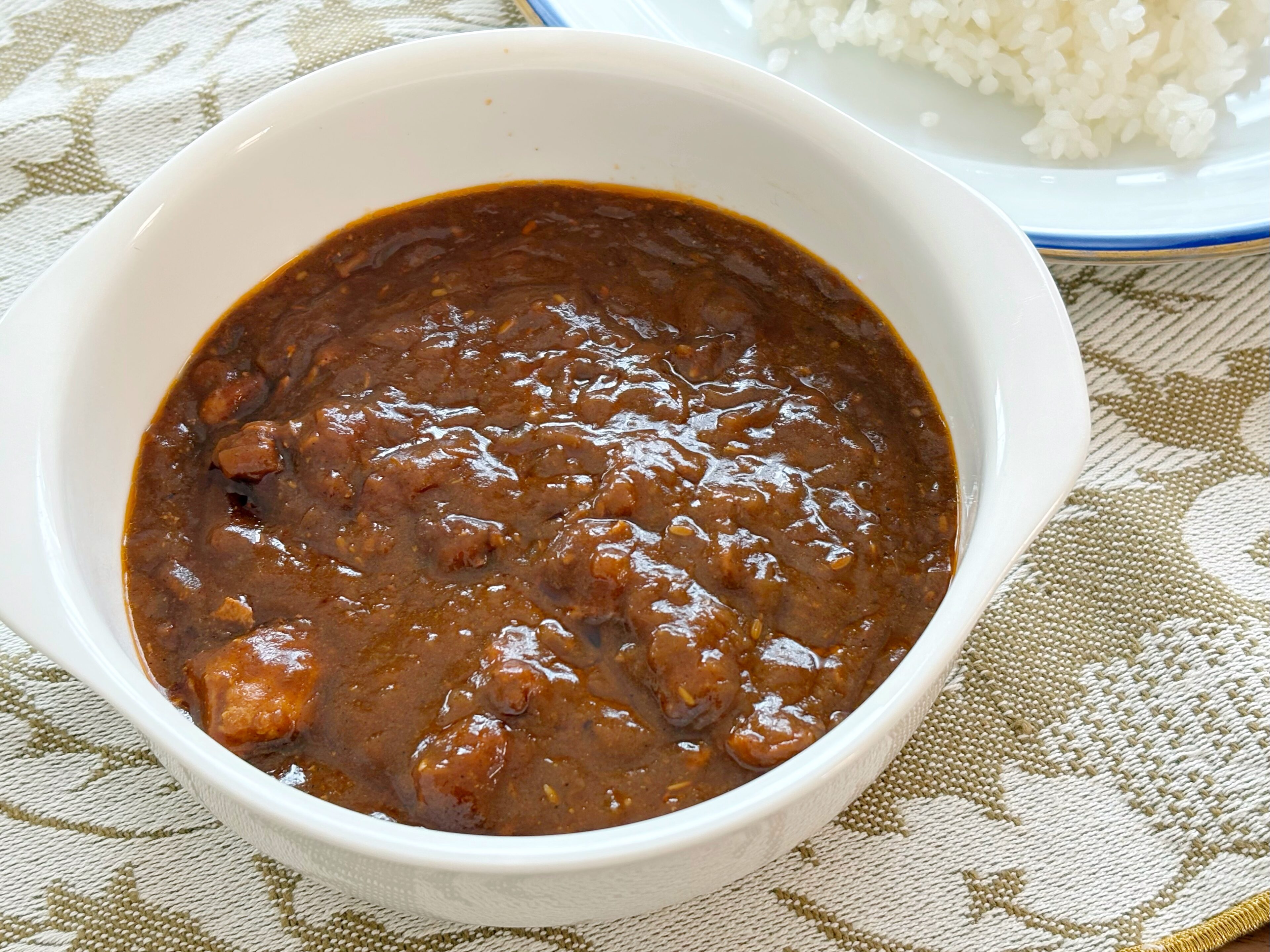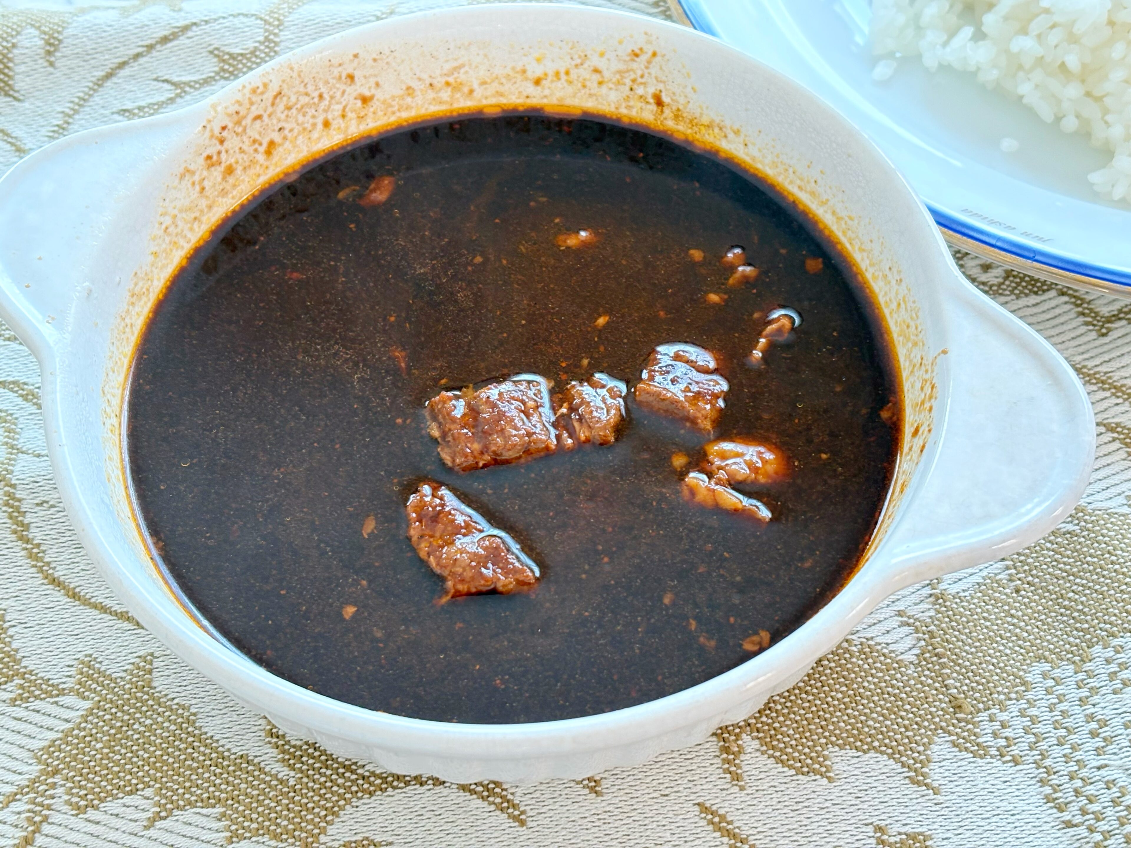 黒色が印象的なさらりとした辛口のカシミールビーフカレー。