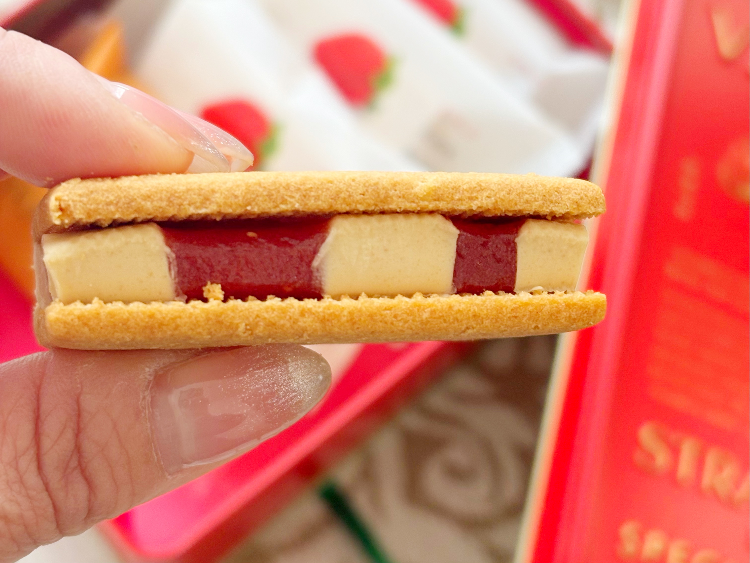 いちごのコンフィチュールと、カナディアンメープルショコラを挟んだ「いちごメープルサンド」。