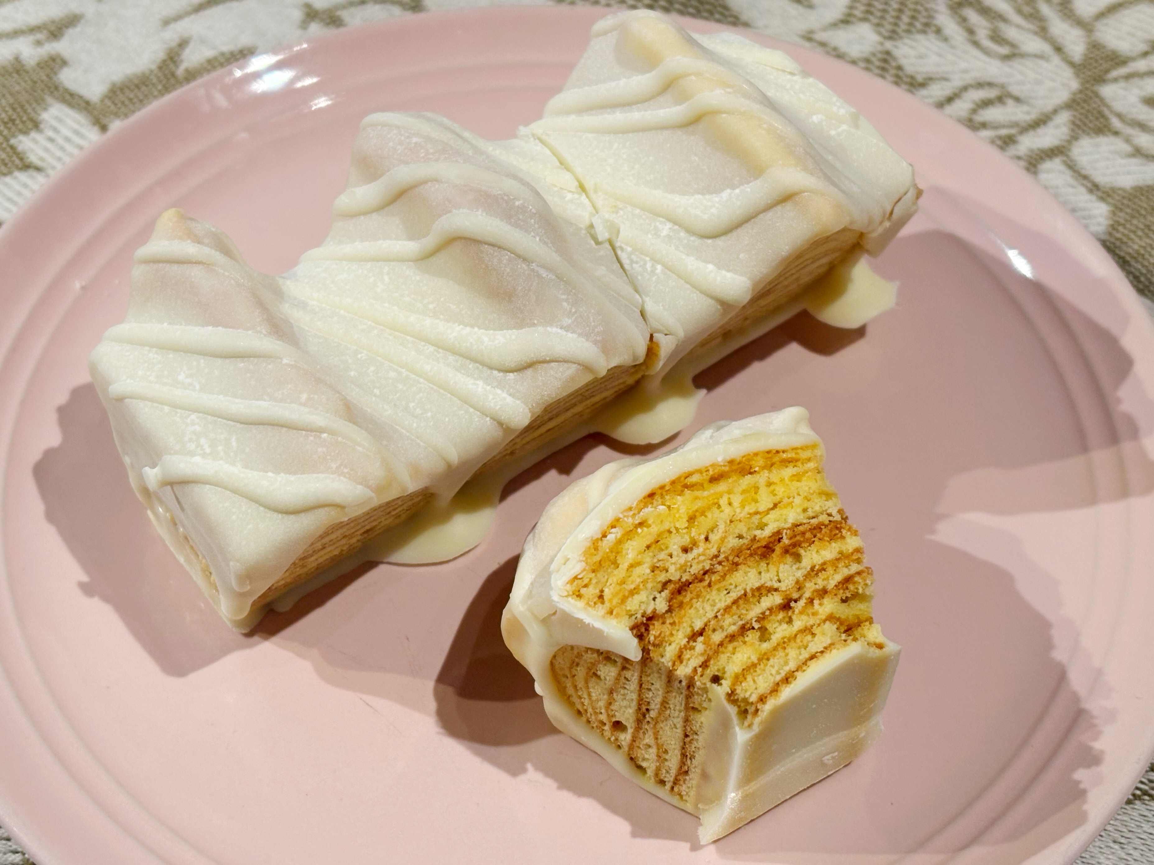バターたっぷりの生地を⻑時間じっくり焼きあげて、ミルク香るホワイトショコラをとろりとかけました。