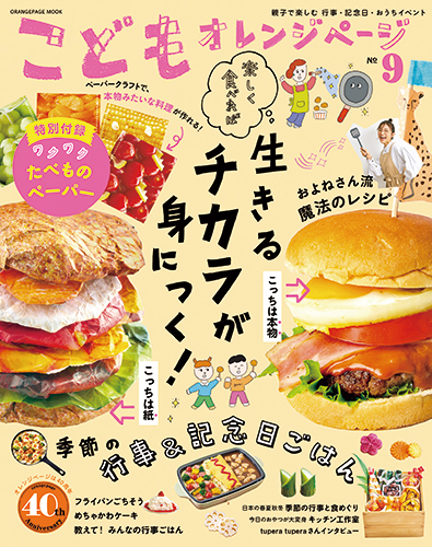 「こどもオレンジページ」第9弾のテーマは「親子で楽しむ 季節の行事&記念日ごはん」。四季の行事や記念日の楽しみ方、おすすめレシピを紹介しています。果物や野菜のかわいい切り方が分かる「キッチン工作室」も。特別付録はクラフトで想像&創造力が高まる「ワクワクたべものペーパー」。親子で一緒に読んでみて。