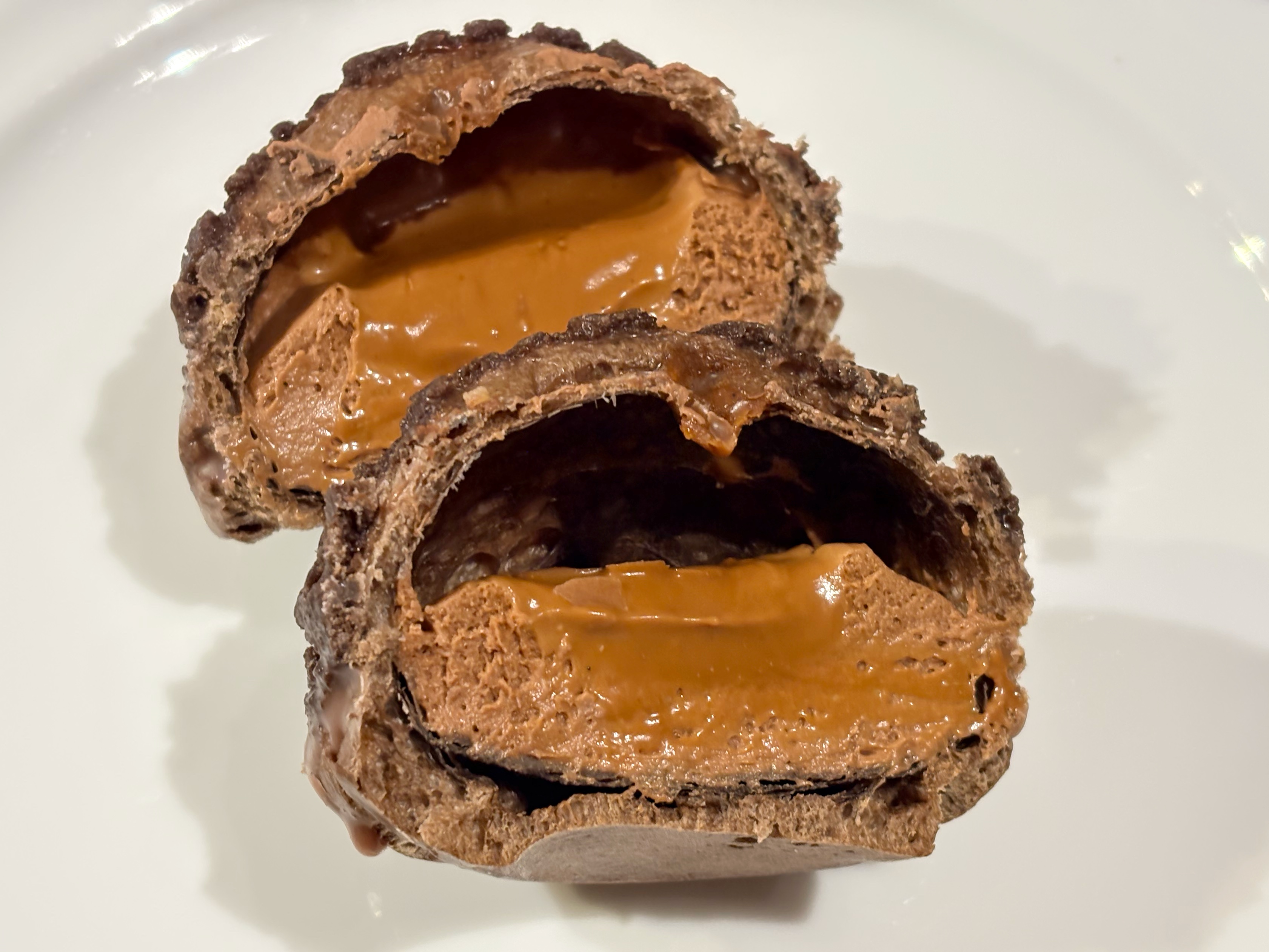 ショコラとキャラメルの王道の組み合わせを絶妙なバランスで表現。しっかりとショコラが主役になりつつ、香ばしいシュー皮と、なめらかなクリームの贅沢な味わいを楽しめる一品です。
