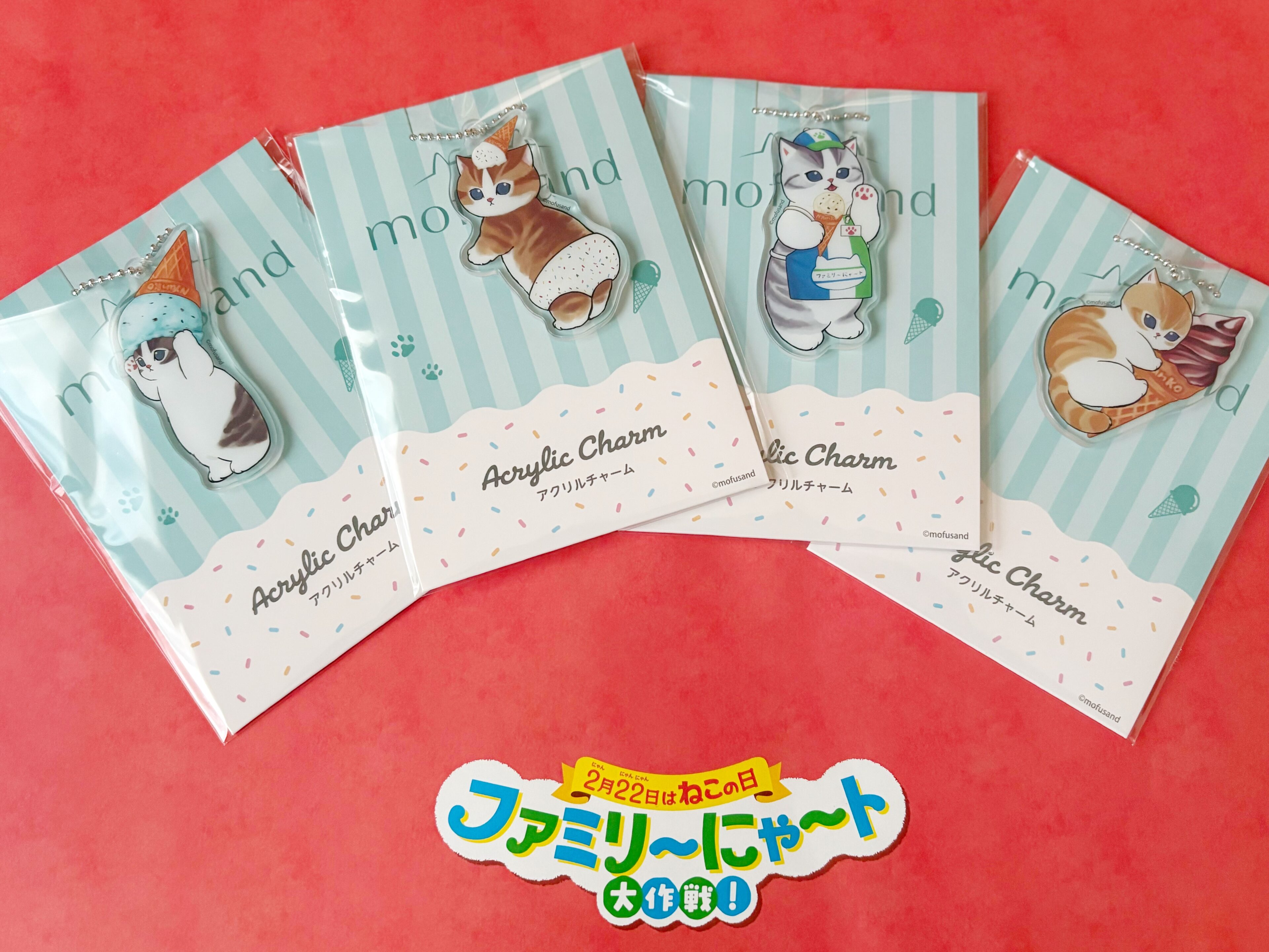 期間中、対象のアイスを2個ご購入ごとに、ファミリーマート限定デザインの「mofusand」オリジナルアクリルチャームが1個もらえるキャンペーンを実施しています。