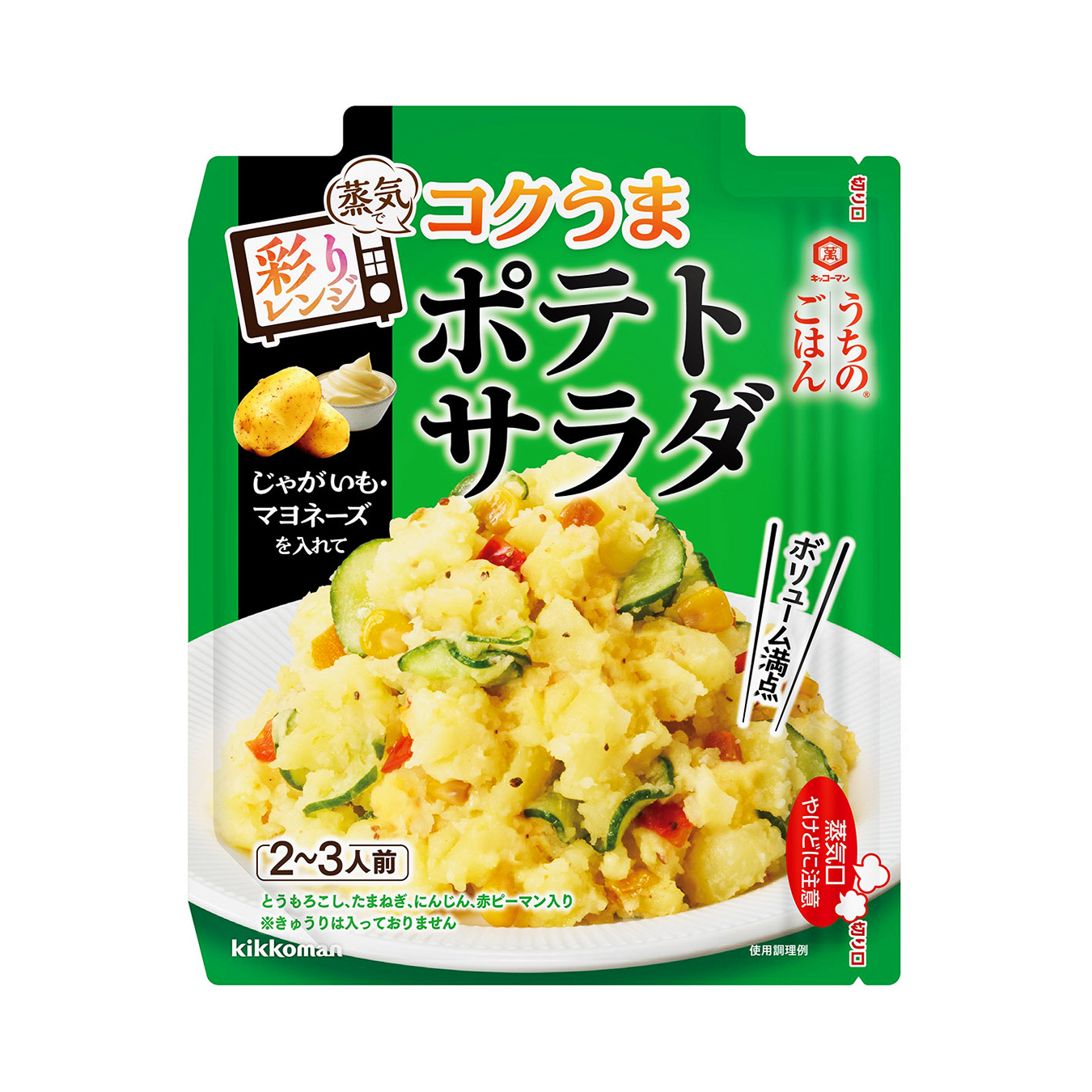 じゃがいも2個を入れて電子レンジでチンして、マヨネーズを加えるだけ。とうもろこしや玉ねぎなど4種の野菜入りで、隠し味のスモークしょうゆで燻製感とコクのある味わいを楽しめます。