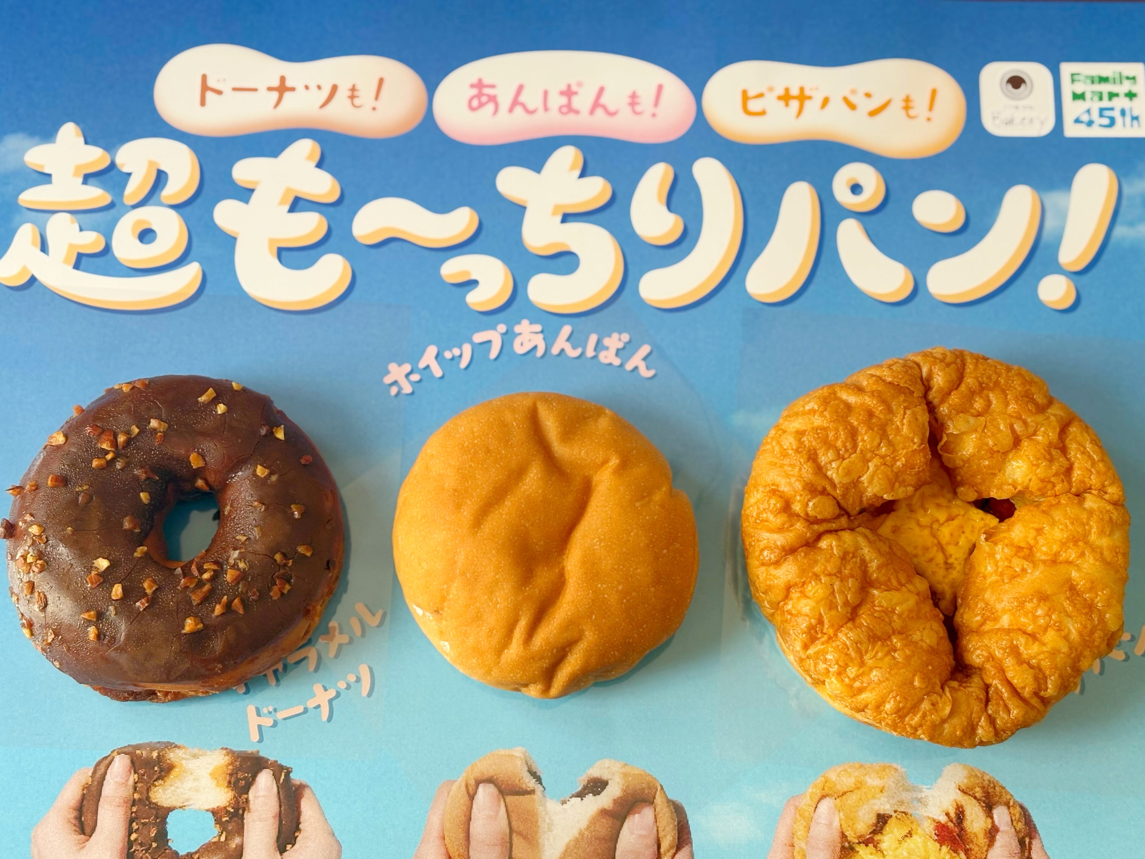 45周年を迎えた【ファミリーマート】では、「ファミマルBakery(ファミマルベーカリー)」の人気パンが、これまでにない“超も~っちり”食感に進化した「超も~っちりパン」シリーズが全国のファミリーマートで発売中です。