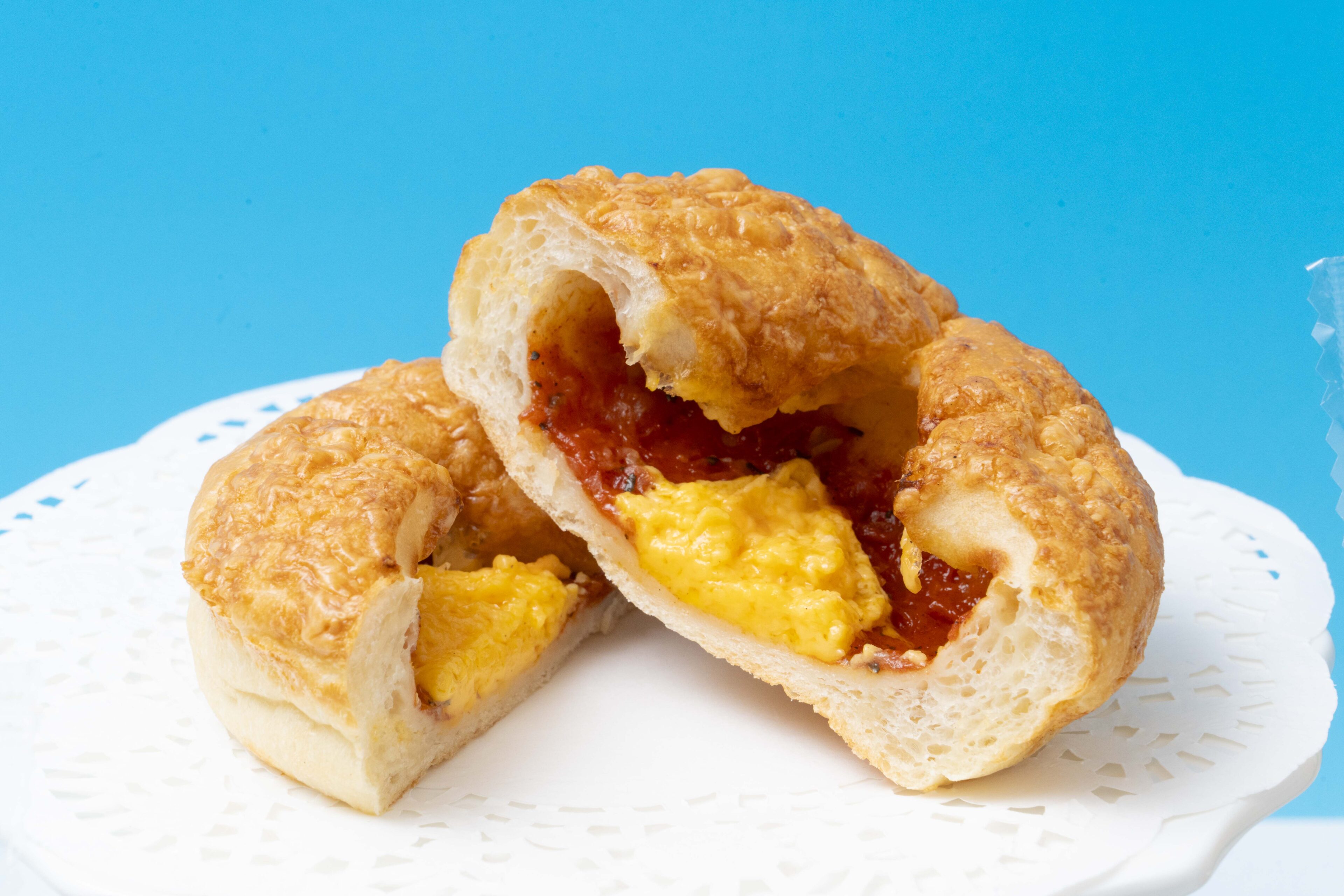 見た目からもっちり感が伝わるピザパンは、ピザソースとチーズソースを包み、クラッシュチーズをトッピング。