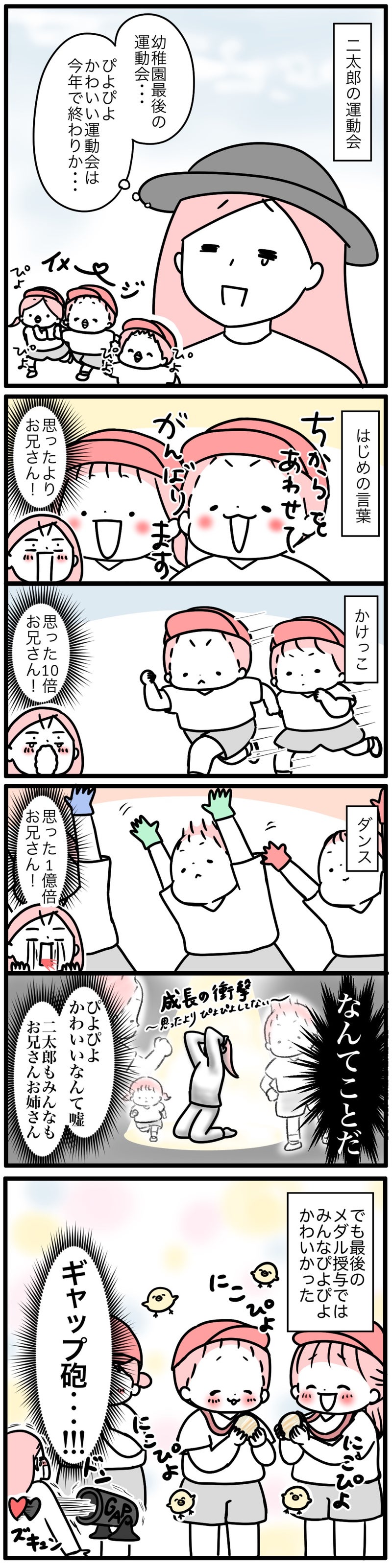 そして去年の運動会…小5のイチコの徒競走は大迫力やったことを考えると、二太郎のぴよぴよもカウントダウンなんでしょうか。切ない!!