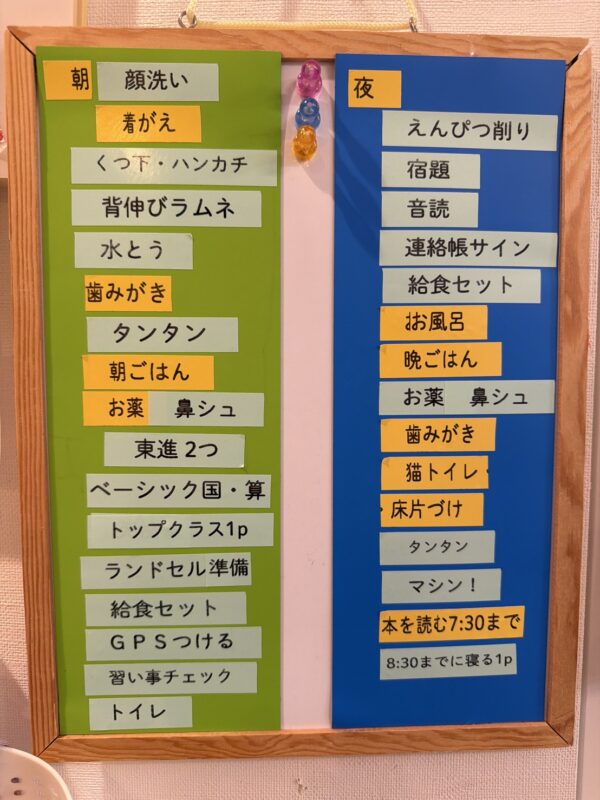 1日のスケジュールを朝と夜に分けたスケジュールボード