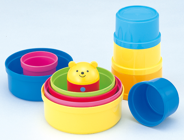 お風呂でもお部屋でも遊べる、シンプルでカラフルなおもちゃ。「バケツのように使ったり、2つを打ち合わせて音の反響を楽しんだり。すぐに乾くのもいい」(0~2歳クラスのママ)