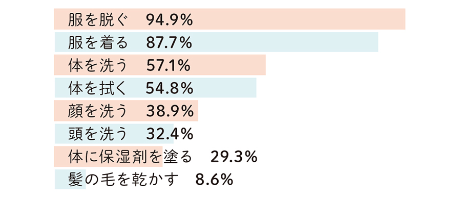 体に傷がないか、かゆいところがないかを一緒にチェックして、クリームを塗るなどのケアを。お風呂で体を清潔にしてケアする大切さを伝えます(泉さん)