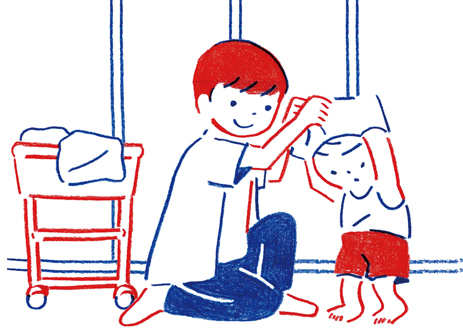 自分で体を拭けない子には親の体や人形を拭いてもらったり、競争好きな子なら親子で競争したりしても〇(泉さん)