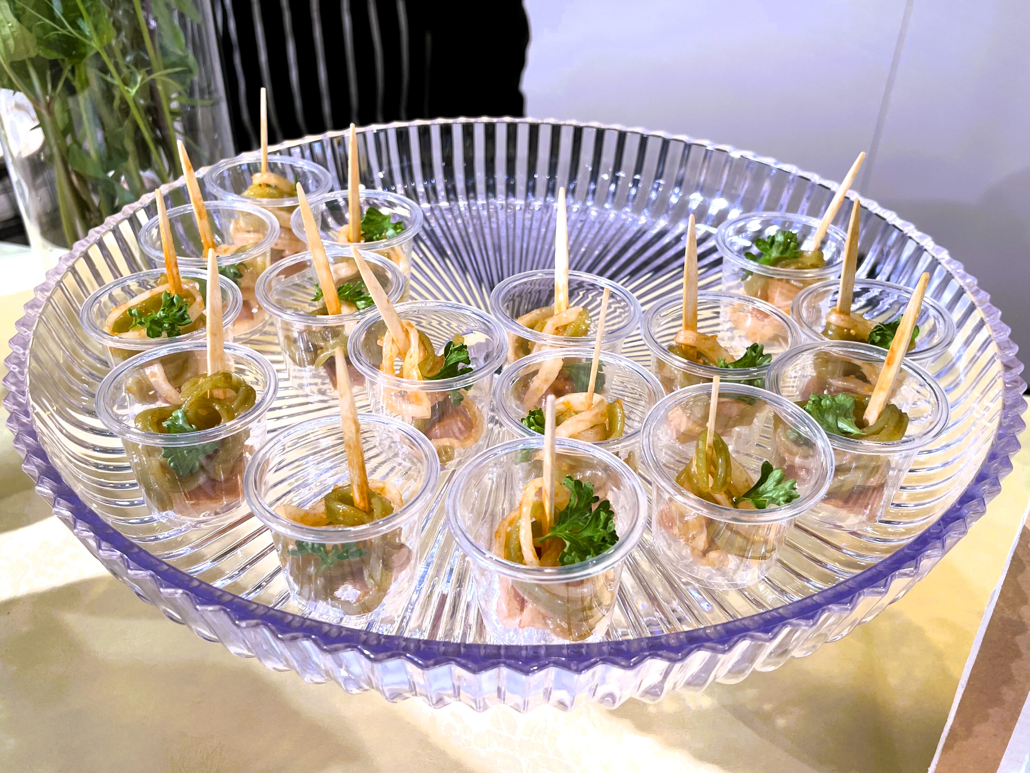 展示会会場で試食で配られていたものは、フレークかぼちゃにプラスし、大人向けに同社から発売中の「ケールプロテイン ピュアルン」も使い、クリスマスツリー風にアレンジされていました。