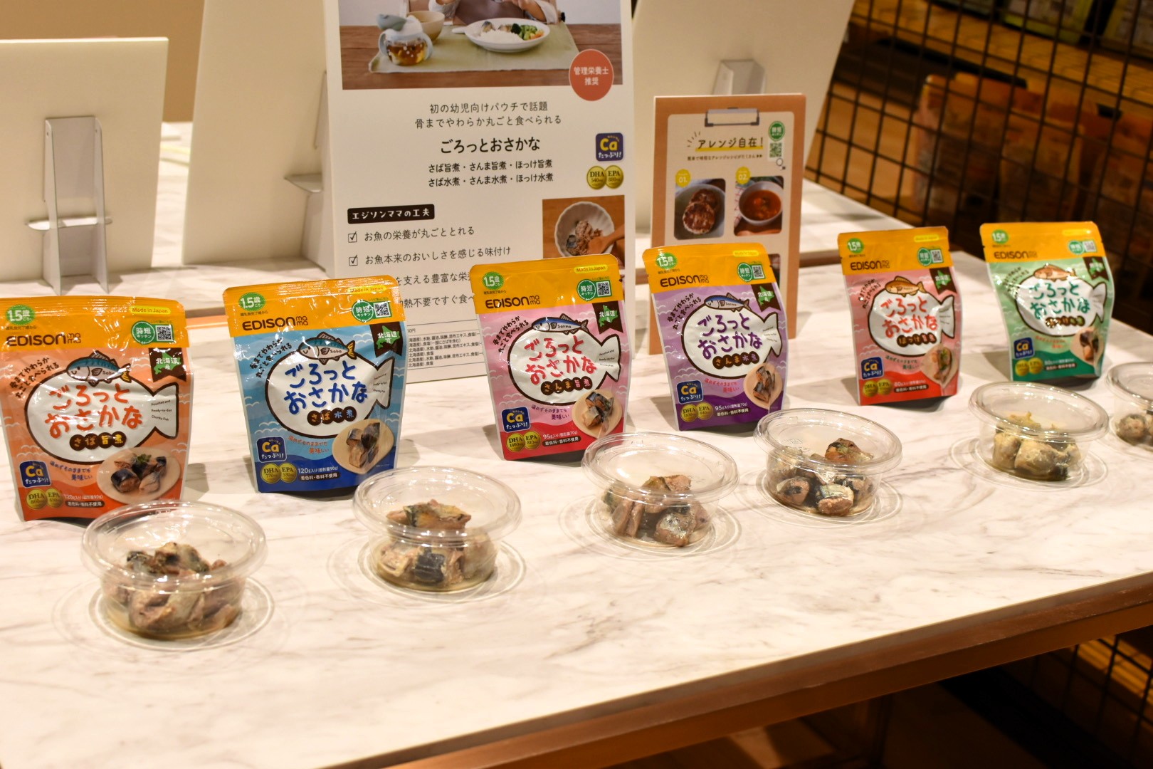 離乳食用の魚といえばツナ・サバが定番ですが、エジソンママでは 「さんま」「ほっけ」など珍しい魚種もラインナップ。旨煮・水煮と選べるのでアレンジの幅も広がりますね。どれも骨抜きで食べやすく、人気があり店舗により売り切れていることもあるそうです。レトルトパウチで保存しやすいので、非常食としてお守り的にストックしておくのも◎