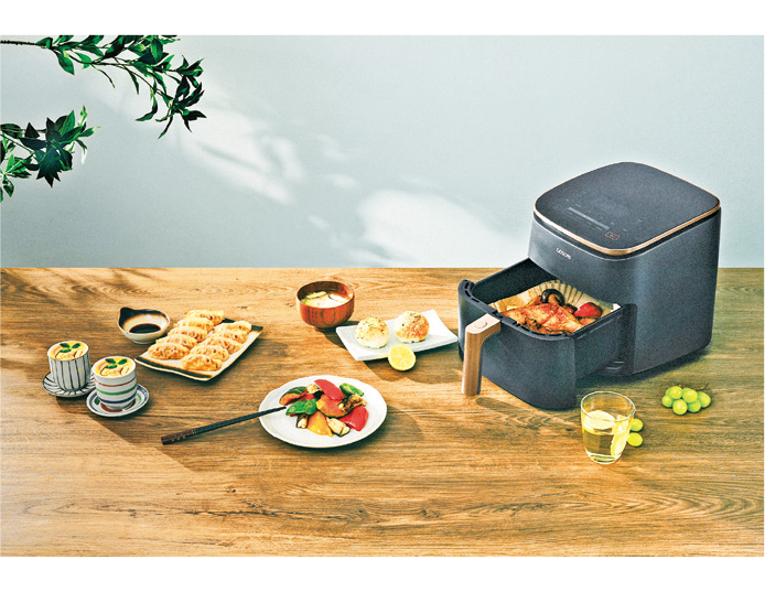揚げる、焼く以外に、低温調理や発酵食品も作れる多機能調理ノンフライヤー。育児応援レシピも同梱。
