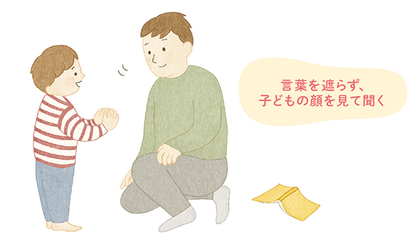 日頃から子どもの話に丁寧に向き合い、対話を重ねることが大切です。忙しいと、つい聞き流してしまうこともありますが、子どもの思いを受け止めようとする大人の姿勢が、安心して話せる関係を育てる第一歩になります。まだ言葉でうまく伝えられない乳児の場合も、泣き声や表情から気持ちをくみ取り、耳を傾けるようにしましょう。(水野さん)