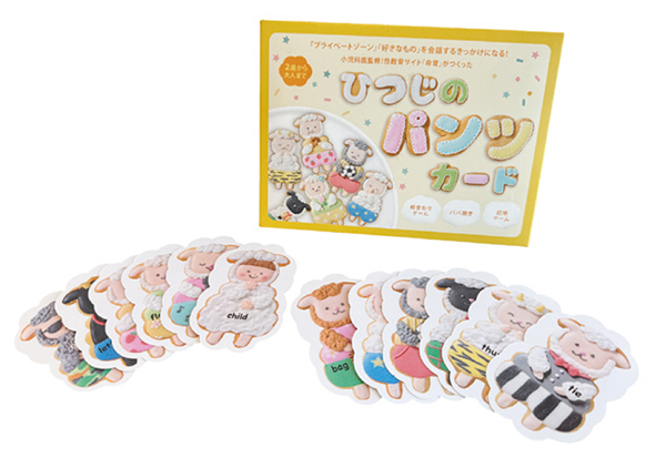 小児科医・保育士の工藤紀子さん監修。パンツ姿のひつじが描かれたカード27枚と、オリジナルのひつじを作れるシートや暗記カード、着せ替え遊びシート、遊び方ガイドを1セットに。ままごとやババ抜き、絵合わせなど世代を越えて楽しめるゲームを通して、プライベートゾーンからジェンダーまで会話が広がります。対象年齢は2歳~大人。2500円。