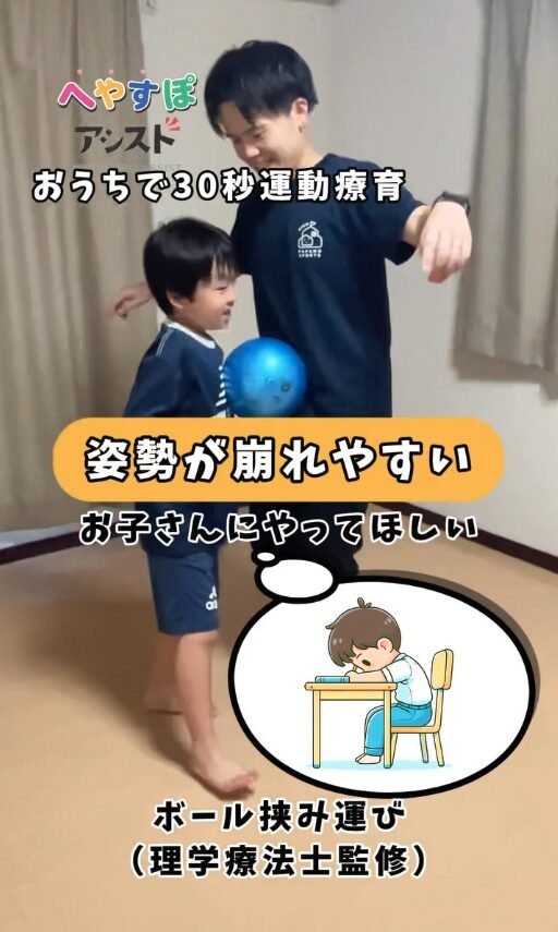 こうした体の土台が整っていない状態で、「背筋を伸ばして!」「ちゃんと座りなさい!」と声をかけ続けると、かえって子どもに負担がかかってしまうこともあります。そこで次に、声かけ以外にできることとして、姿勢の土台を育てる運動遊びをご紹介します。