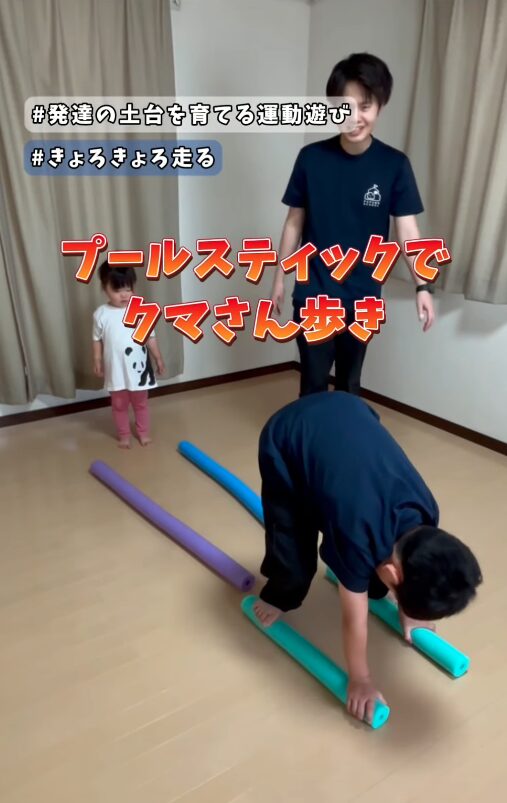 ジャンプという動きを通してバランスを保つ動きの練習にもなり、更に指示者の動きを見ながら体を動かす為、土台の感覚全てにすごくいい刺激になる運動です。