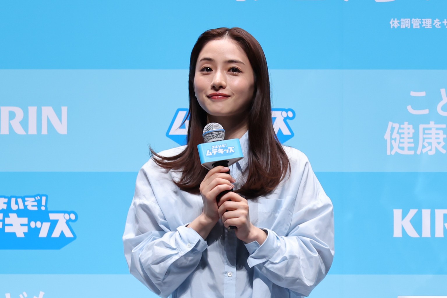 子どもの体調管理の強い味方「キリン つよいぞ!ムテキッズ」のCMに出演した石原さとみさん。発表会で、2児の母として日頃から意識している体調管理について&あんふぁん編集部が取材しました。