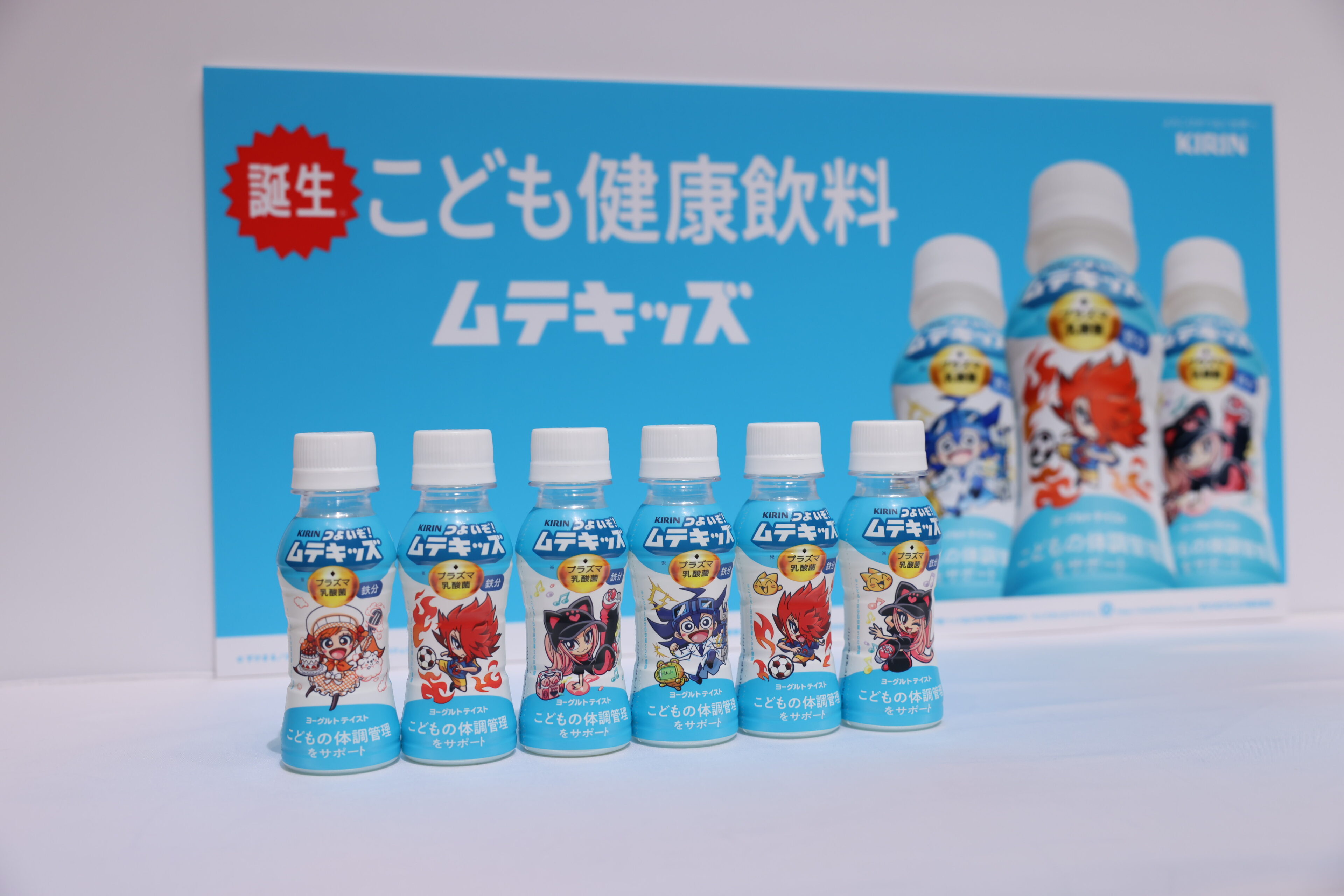 「キリン つよいぞ!ムテキッズ」は、子ども1日分目安量となるプラズマ乳酸菌500億個と鉄分1.2mgを配合した、子どもの体調管理をサポートするドリンクです。すっきり飲みやすいヨーグルトテイストで、子どもが毎日飲みたくなる味わいも魅力。子どもの健やかな成長を支える商品として、日本学校保健会の推薦用品に認定されています