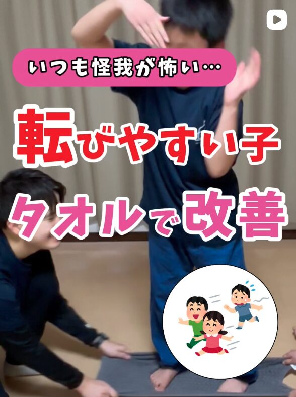 タオルを使って、前後左右に揺れることで、いろいろな方向のバランス感覚を育てることができます。