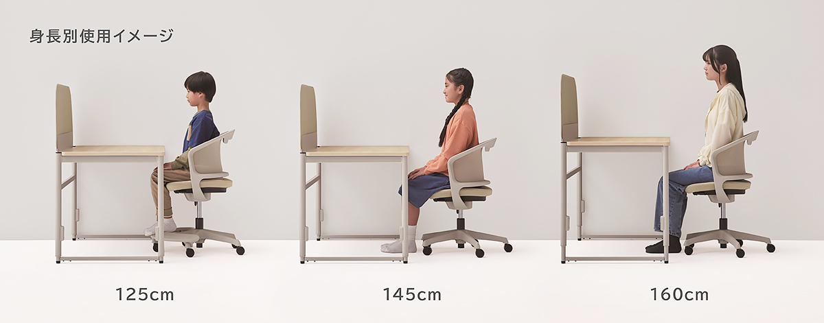 発育・発達中の子どもの成長期は、好ましい姿勢を身につけるベストタイミング。オカムラ「mirumio(ミルミオ)」デスク&チェアは、体格やライフスタイルの変化に合わせてサイズや使い方を変えることができ、子どもの“いま”にぴったりの使い心地を実現します。