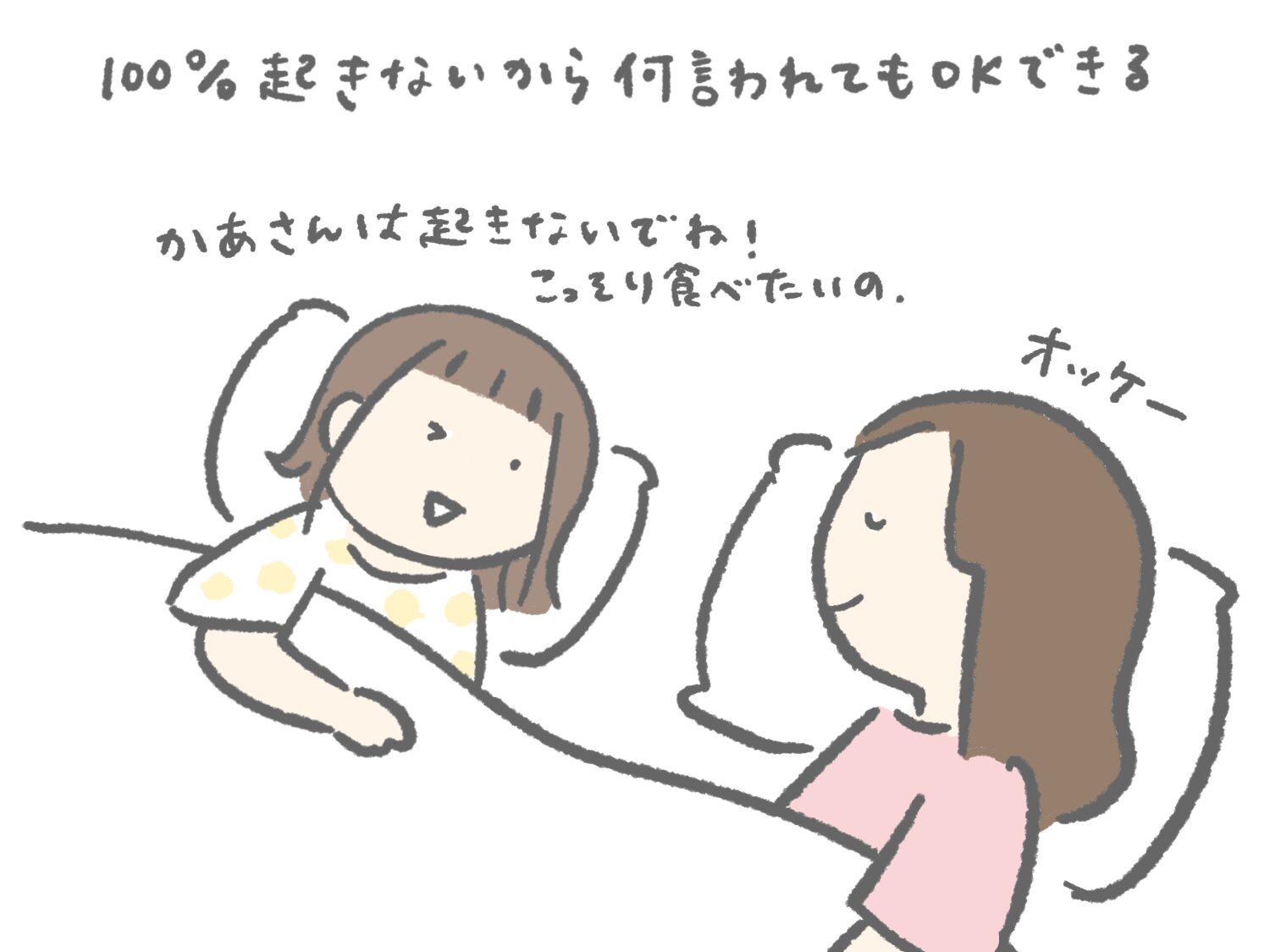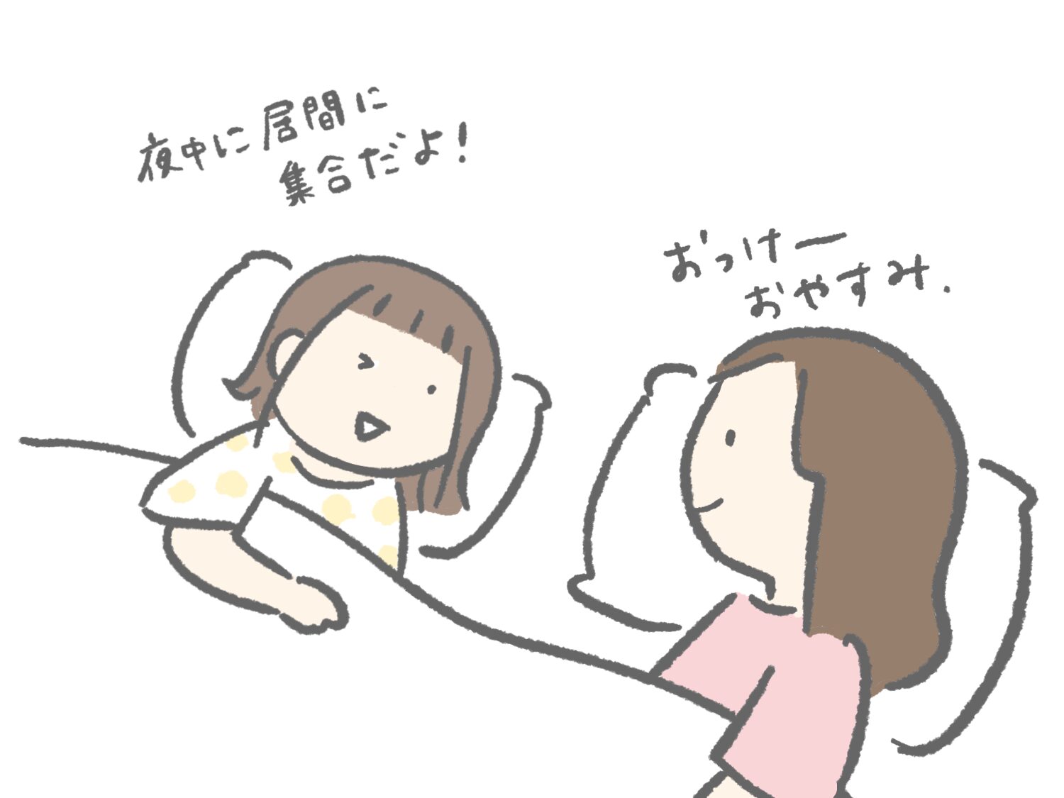 自分でも起きられないってうすうすわかっていそうなものなのに、夜中にこっそり起きてやりたいことの計画を立てているのがかわいいです。楽しいことを考えながら寝たら、いい夢見れるかもね。