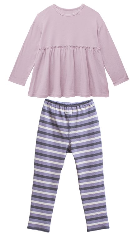 ・前も後ろもどちらでも着られるレギンスパンツ(ラベンダーグレーボーダー)